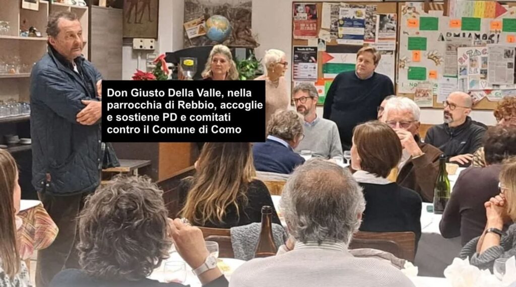 Al centro del post una cena svoltasi giovedì 18 dicembre 2025 alla parrocchia di Rebbio, dove, come scrive il sindaco “Don Giusto accoglie e sostiene il PD e comitati contro il Comune di Como”. Un riferimento al fatto che si ritrovassero alla stessa tavola diversi esponenti del PD e di quanti a vario titolo stanno discutendo di differenti battaglie legali contro alcune delle decisioni più controverse dell’amministrazione comunale.