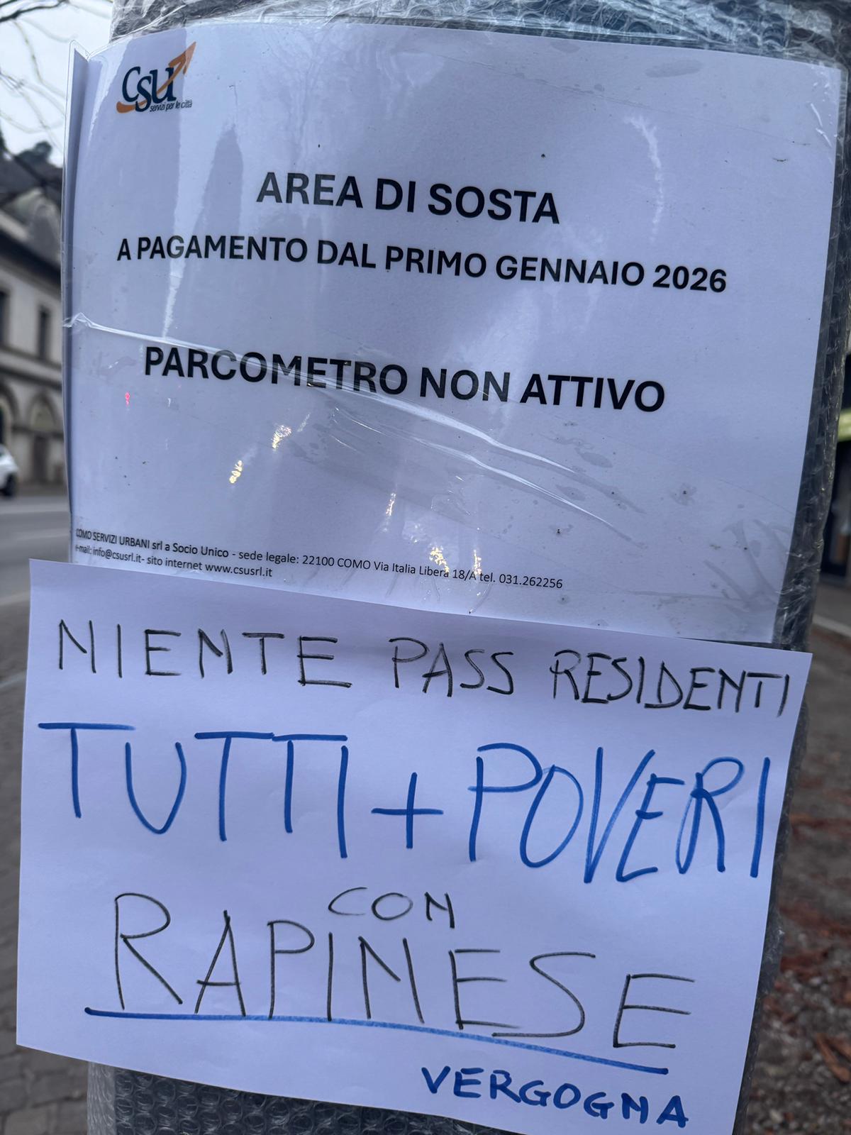 Dilaga la protesta a Como per la rivoluzione dei parcheggi varata dalla giunta Rapinese. E si moltiplicano in tutta la città i cartelli affissi ai nuovi parcometri posizionati da Csu nelle zone in cui i posti bianchi diventeranno a pagamento o dove spariranno le vecchie strisce gialle.
