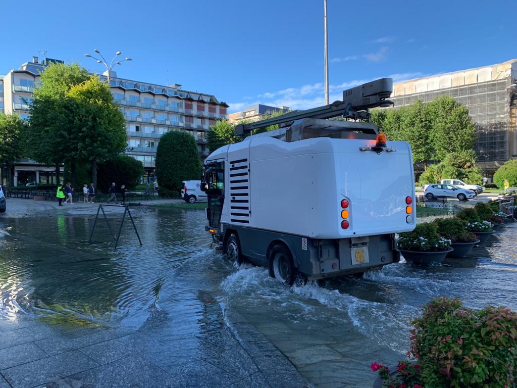 Intanto, nonostante i grandi lavori di pulizia delle scorse ore, continuano ad affluire detriti e legname davanti a piazza Cavour, come da foto e video qui sotto.