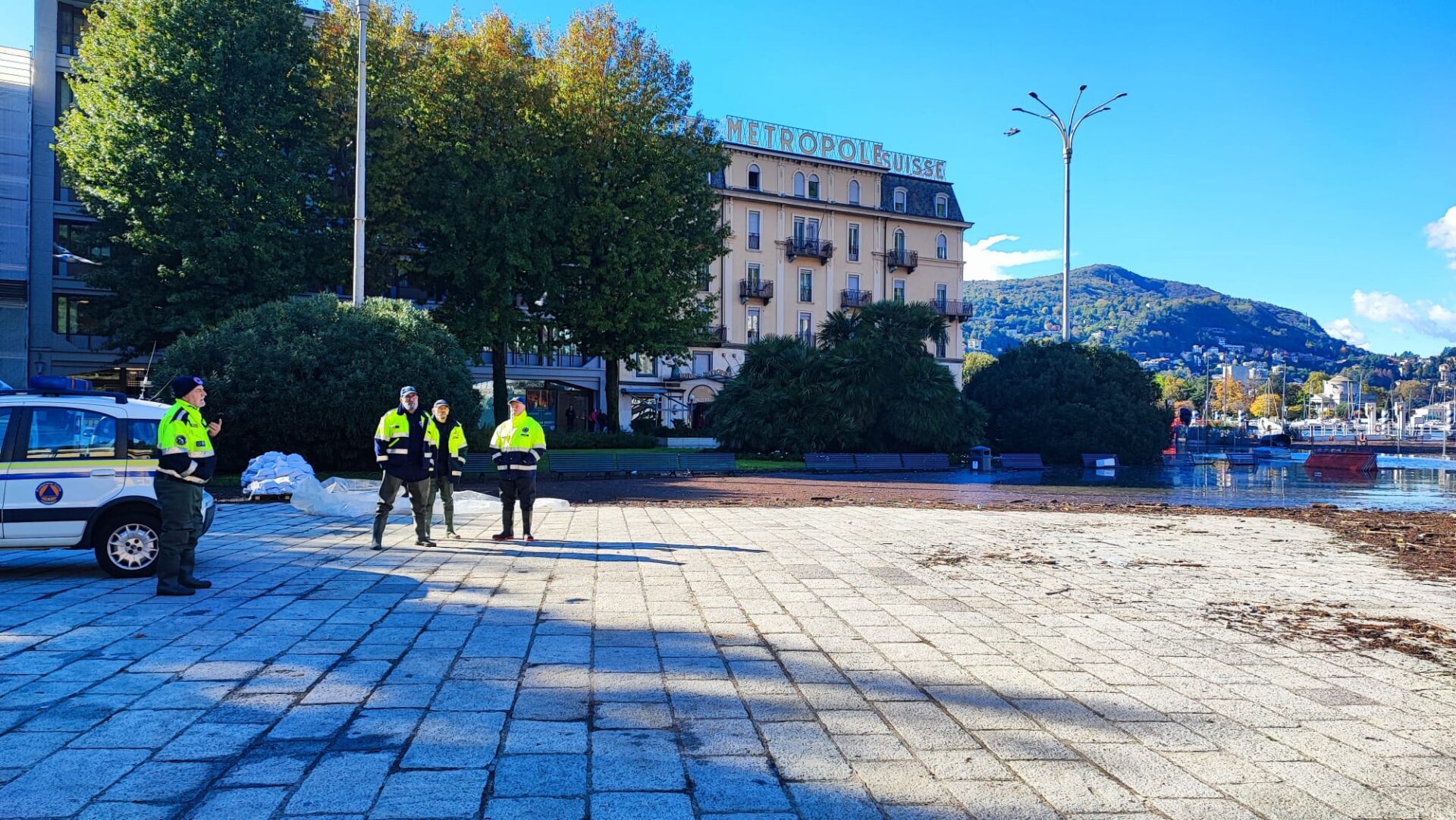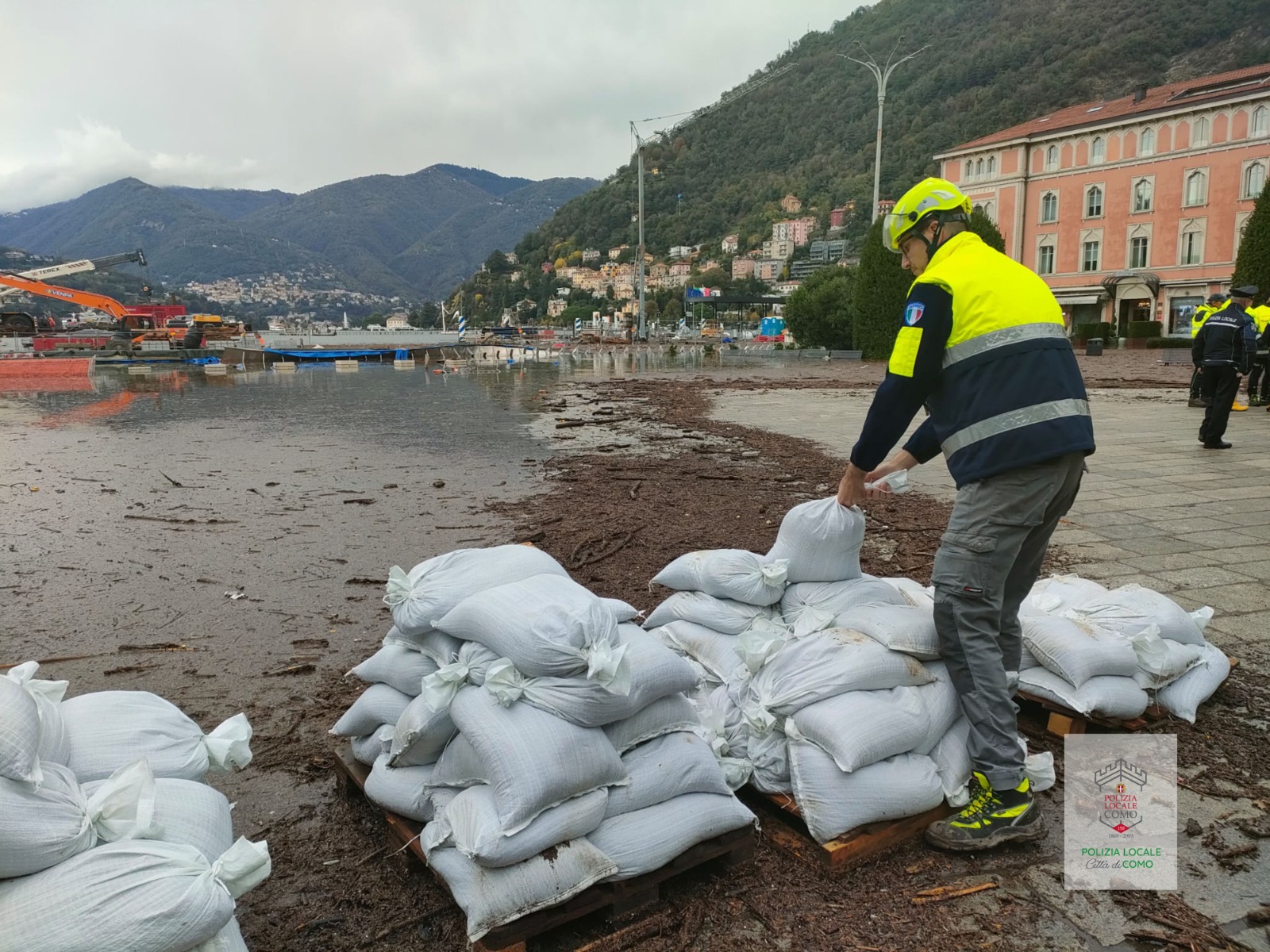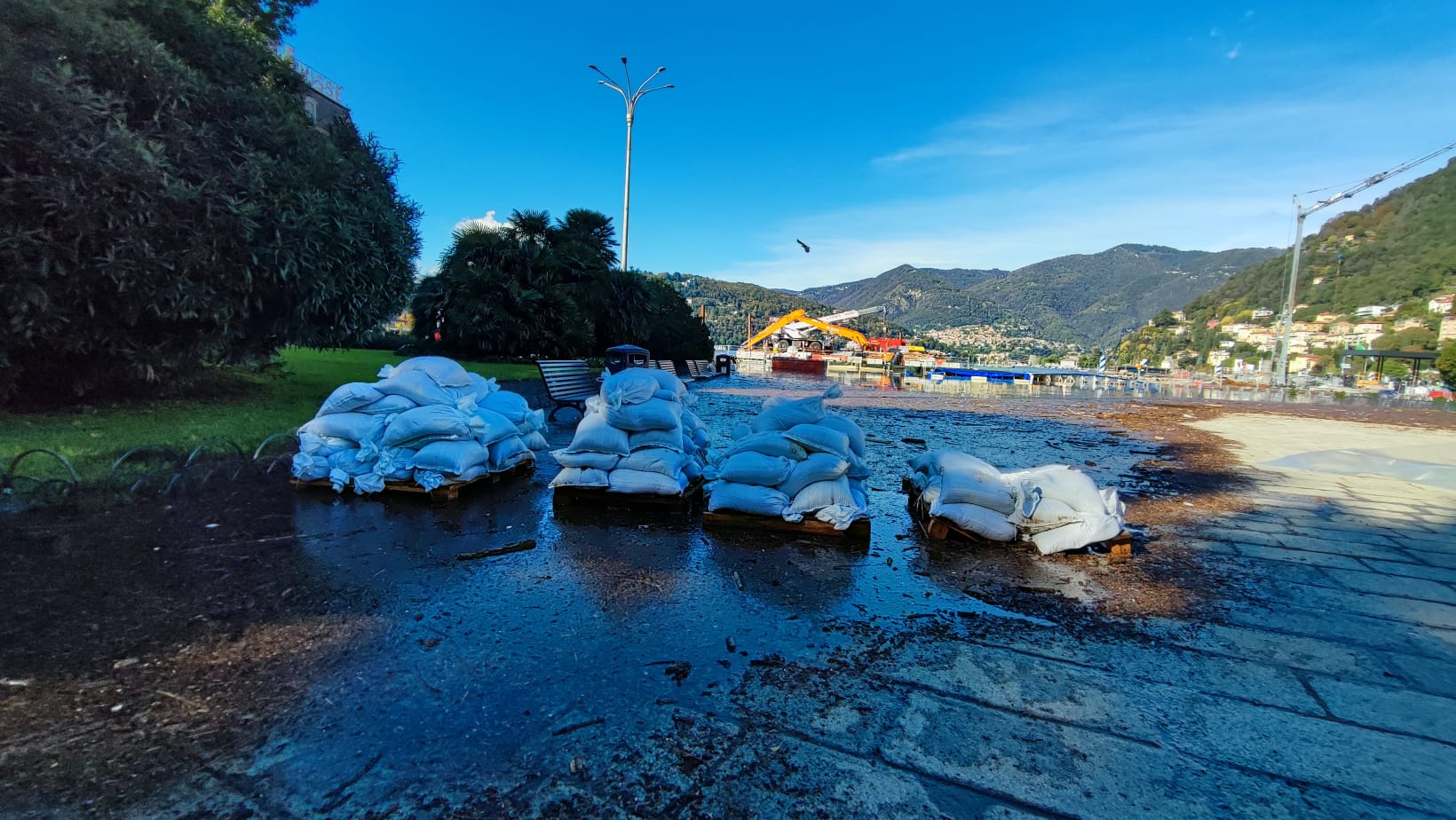 – opere di difesa con sacchi di sabbia per tutti i frontisti di Piazza Cavour, Lungo Lario Trento e Trieste e Via Cairoli;