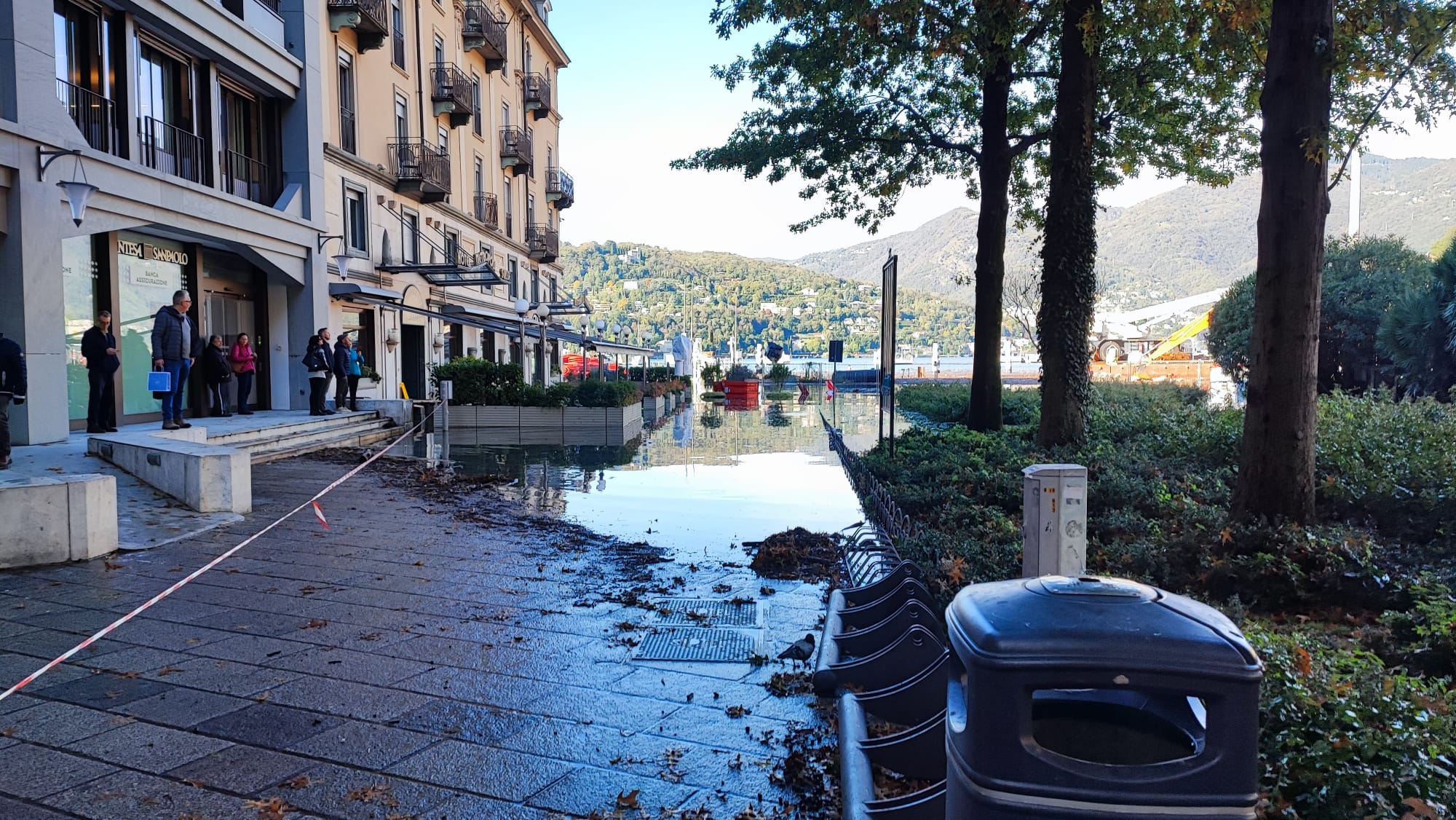Come previsto il lago è arrivato in piazza Cavour a causa delle abbondanti piogge degli scorsi giorni. La piazza è transennata e vige il divieto di accesso, anche per i pedoni. E’ considerata area rossa. Non avvicinatevi e agevolate il lavoro dei volontari e la movimentazione di mezzi e attrezzature. Anche nelle altre aree transennate (via Cairoli e Lungo Lario Trento e Trieste). Camminare nelle aree allagate senza calzature idonee è pericoloso.