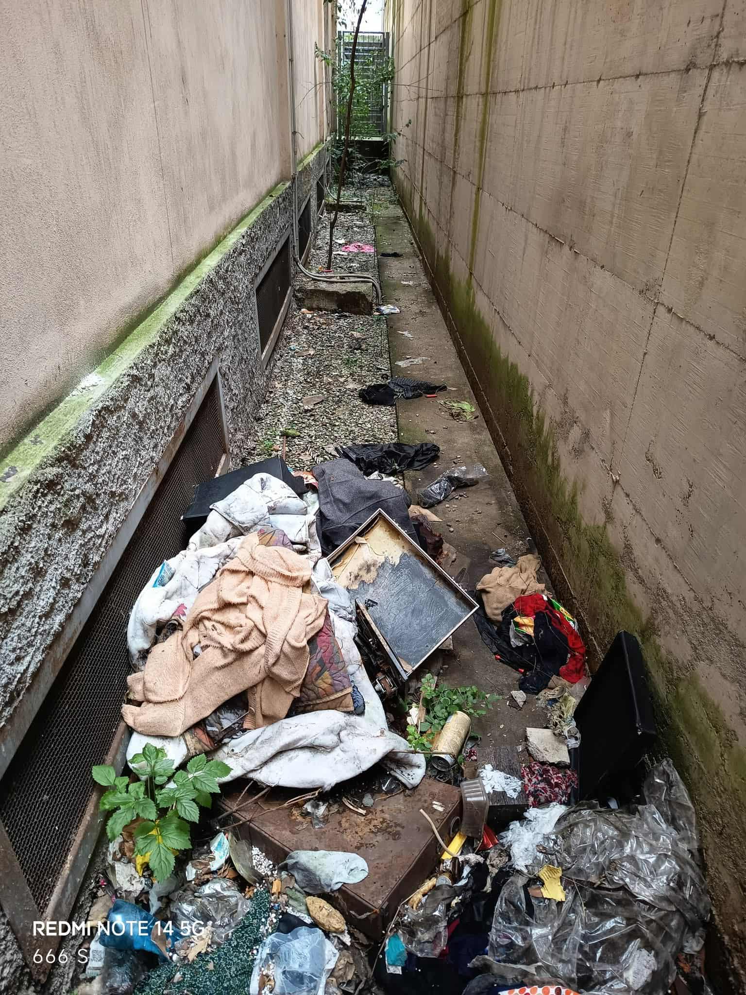Ovunque, cumuli di rifiuti e sporcizia, con vere e proprie cataste di indumenti, spazzatura e materiali di vario genere.