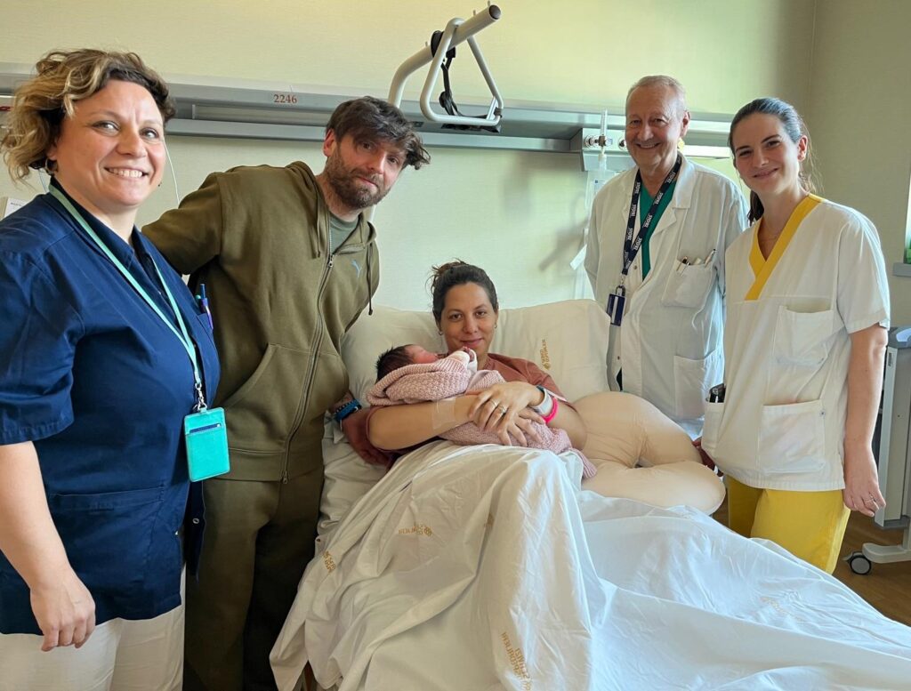 E’ una bimba Margherita Elisabetta la prima nata del 2026 – alle 21.11 del 1 gennaio – all’ospedale Sant’Anna. A portare i saluti questa mattina – e consegnare l’omaggio floreale del Comune di San Fermo della Battaglia – alla mamma Alessia Teotonico e al papà Nicolò Fagetti, residenti a Canzo, è stato questa mattina, il dottor Paolo Beretta, primario dell’Ostetricia e Ginecologia, nonché direttore del Dipartimento Materno Infantile di Asst Lariana. Insieme al dottor Beretta sono intervenute la coordinatrice infermieristica Stefania Natelli, e l’ostetrica Marta Soncini