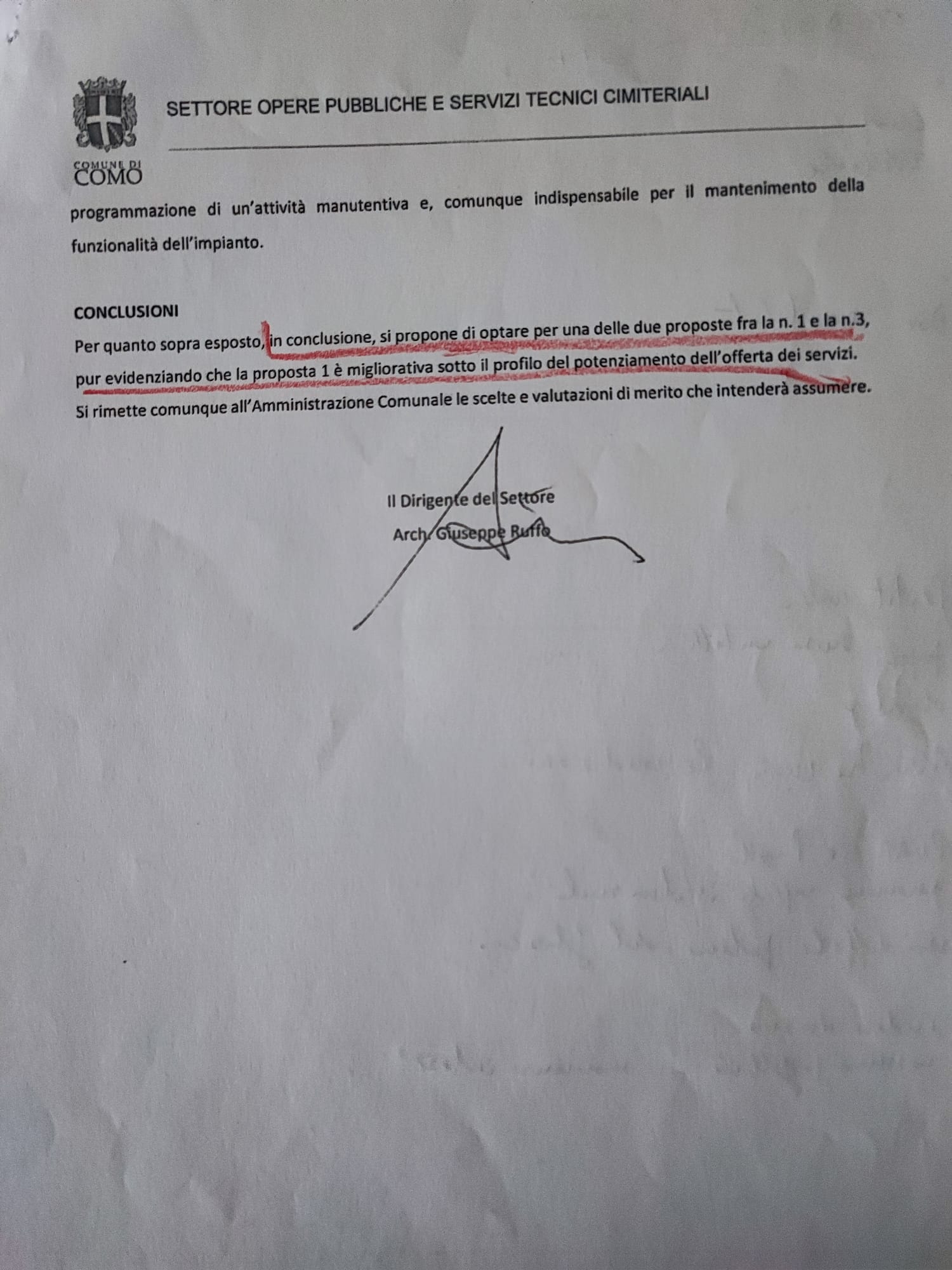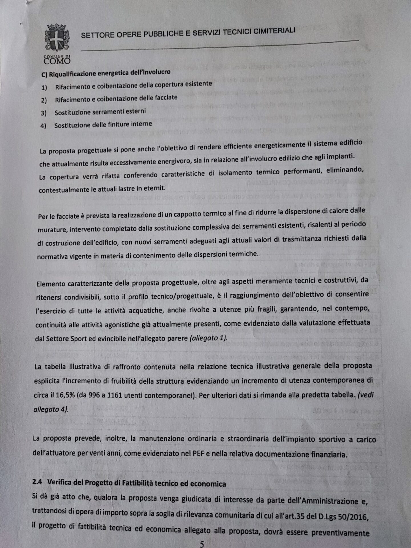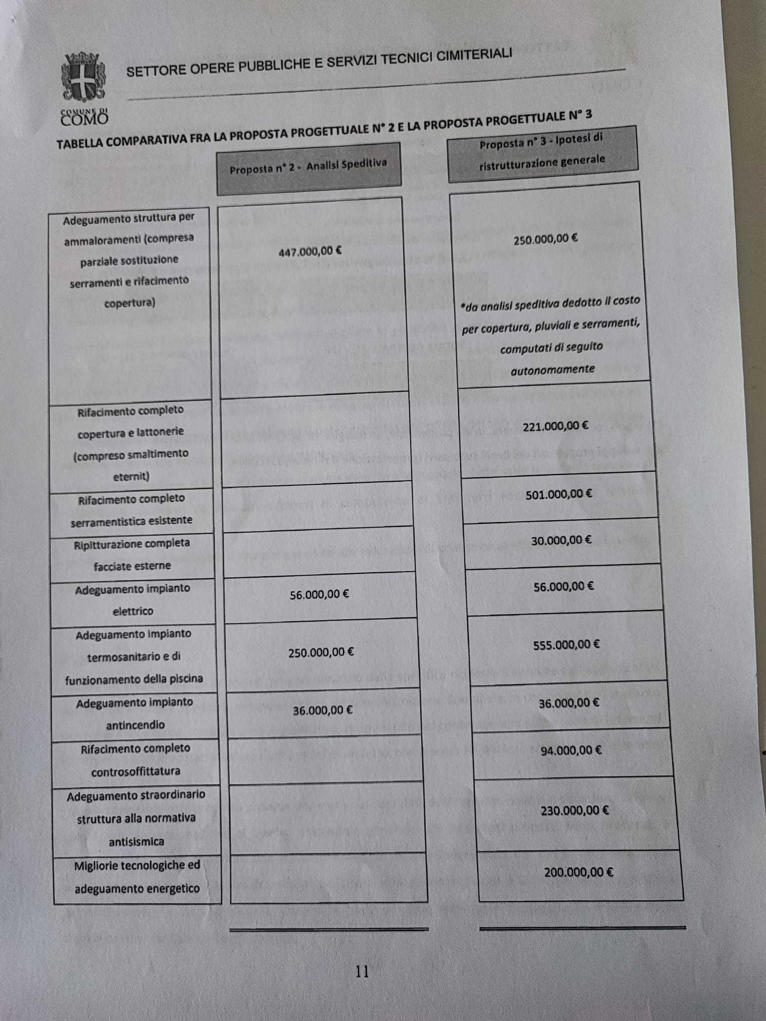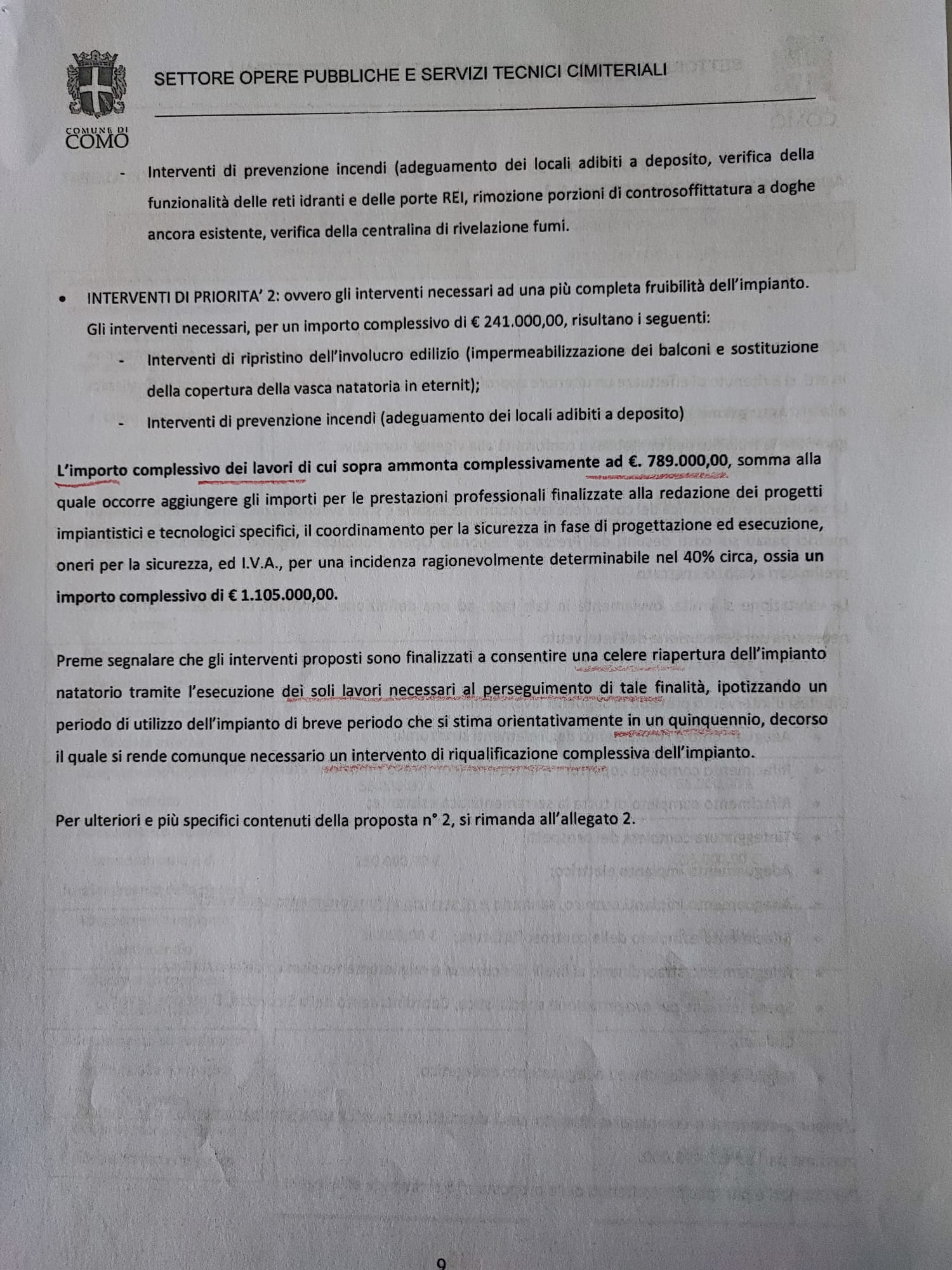 Aggiunge poi Nessi: “Nel frattempo la piscina resta chiusa sine die in preda al degrado. Abbiamo denunciato in consiglio comunale, mostrando il testo originale, che la famosa relazione sventolata in campagna elettorale da Rapinese in realtà diceva il contrario di quanto da lui sostenuto e cioè che la ristrutturazione a breve promessa dal sindaco era stata valutata negativamente dai tecnici in quanto definita “non efficace”. In questa vicenda sta tutta l’inaffidabilità di Rapinese”. Ecco il documento: