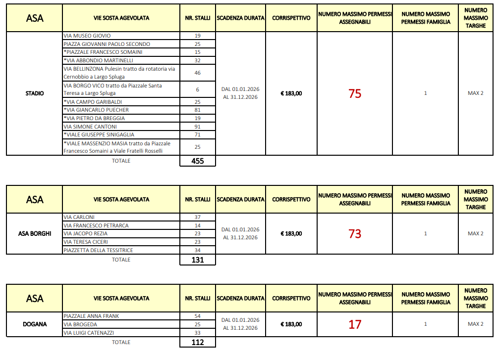 Così in base al nuovo Regolamento per il rilascio e l’utilizzo dei permessi di sosta agevolata” (entrato in vigore il 15.11.2025) “che assegna alla Giunta Comunale la