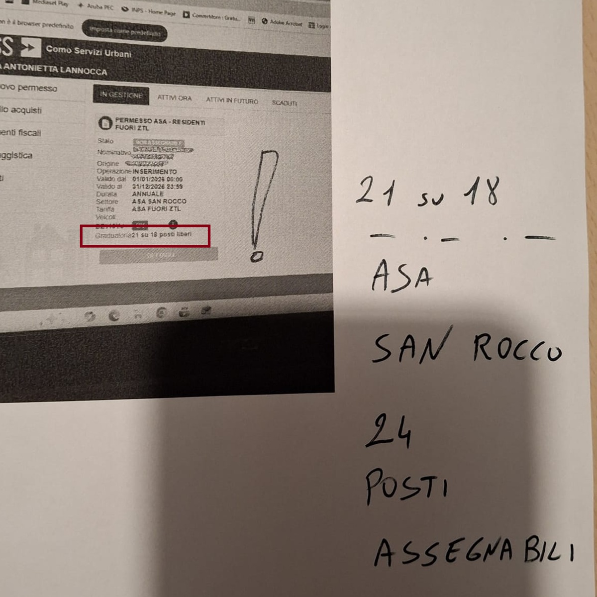 abbiamo verificato il sorteggio dei posti auto Asa (Area di sosta agevolata, Ndr) San Rocco, e una amica risulta esclusa. Nella graduatoria risultante dal sito di Como Servizi Urbani viene indicata 21ma su 18. Ci chiediamo come mai i posti dell’area sono 24 ma il sito ne evidenzia 18.