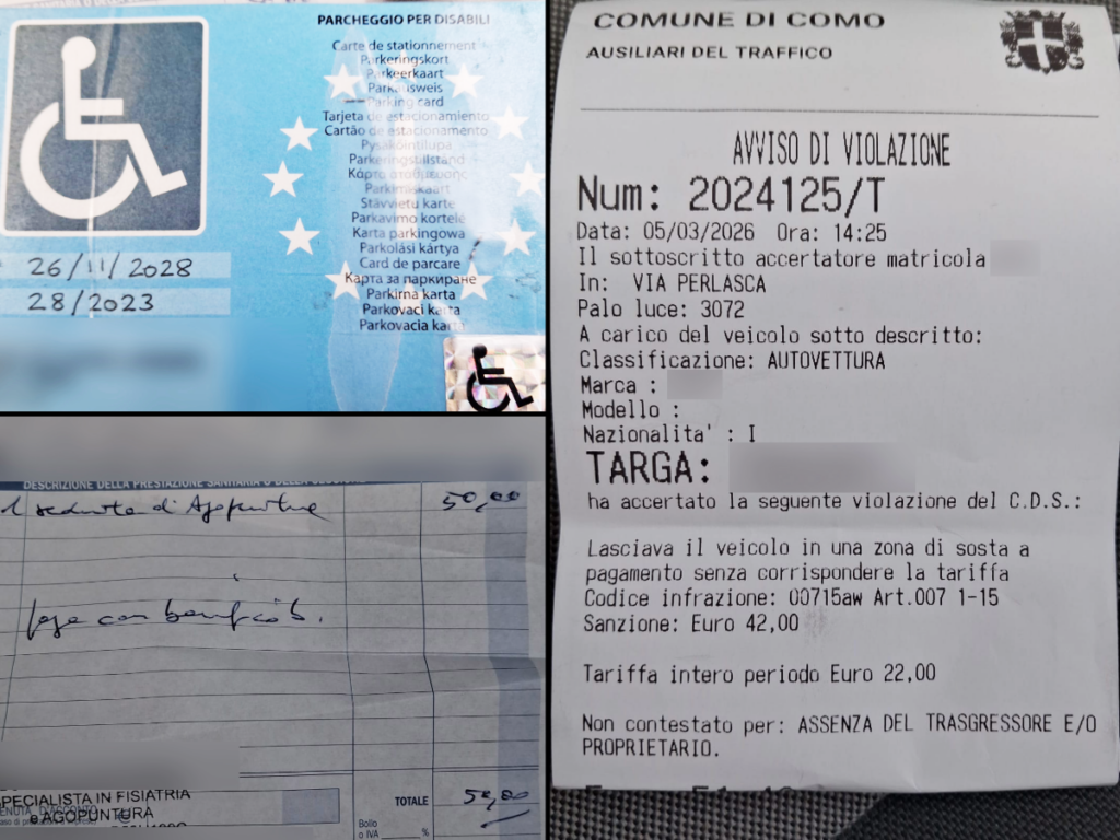 Ieri sono andata a prendere mio figlio che stava male per portarlo urgentemente dal medico. Aveva un forte dolore alla schiena e non riusciva a camminare. Lui è invalido al 100% con accompagnamento. Ho parcheggiato in Via Perlasca, mio figlio si trovava dietro l’ angolo in via Dante poco distante, e nella fretta di andare a sorreggerlo perché faceva fatica a camminare ho dimenticato di esporre il suo contrassegno. Al ritorno dopo pochi minuti ho trovato la multa.