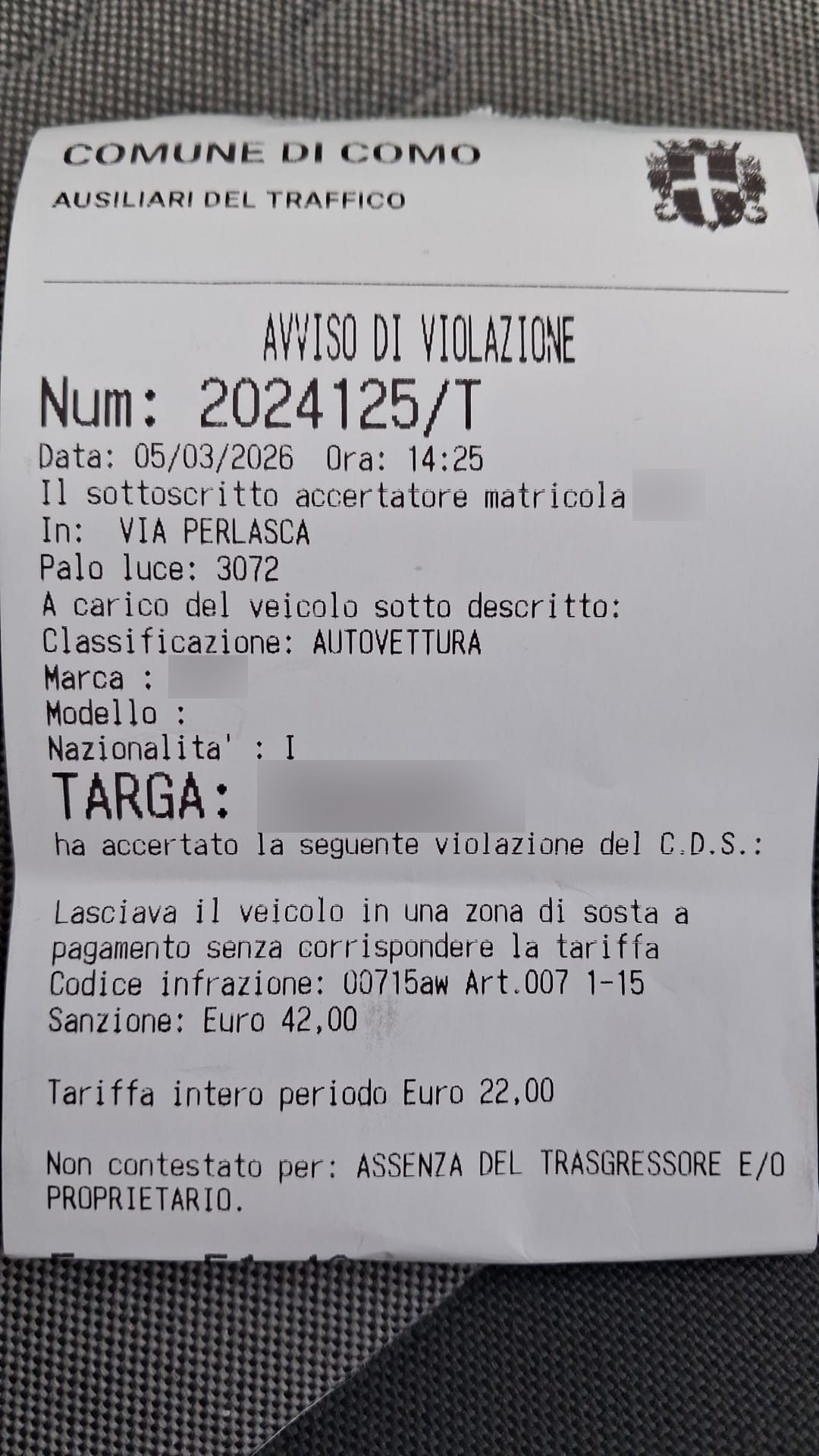 Stamane sono andata all’ ufficio verbali, ho spiegato che si trattava di un’ emergenza, mostrato il contrassegno e la fattura del medico in data di ieri, ma il vigile è stato inflessibile, se sei invalido e stai male sono fatti tuoi. Grazie Vigili del Comune di Como per la sensibilità dimostrata nei confronti di chi soffre!!