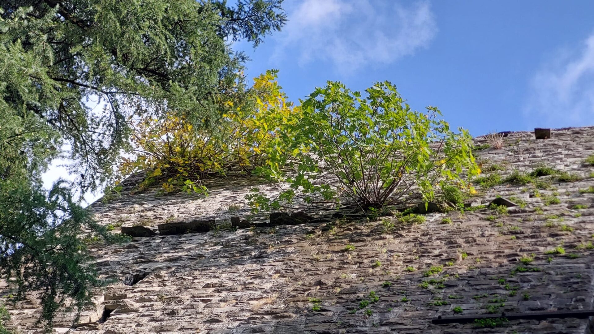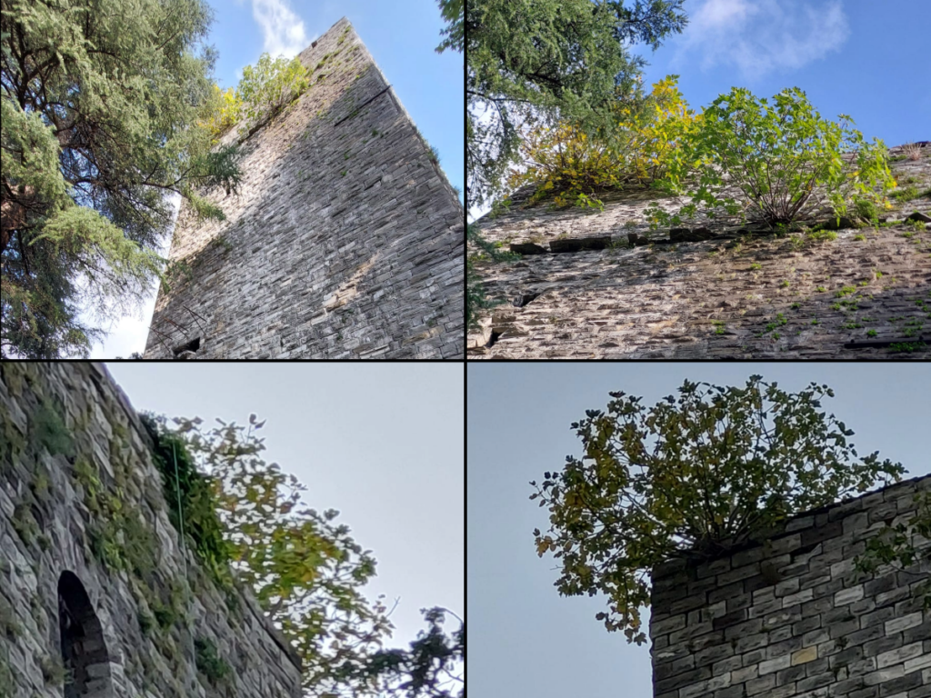 Riceviamo e pubblichiamo diverse foto da un lettore che segnala (con messaggio firmato) “la rapida e pericolosa crescita di almeno 4 alberi, che hanno già smosso diverse pietre, che di questo passo finiranno per cadere al suolo pima o poi, dalla Torre Gattoni in cima a Viale Varese”.
