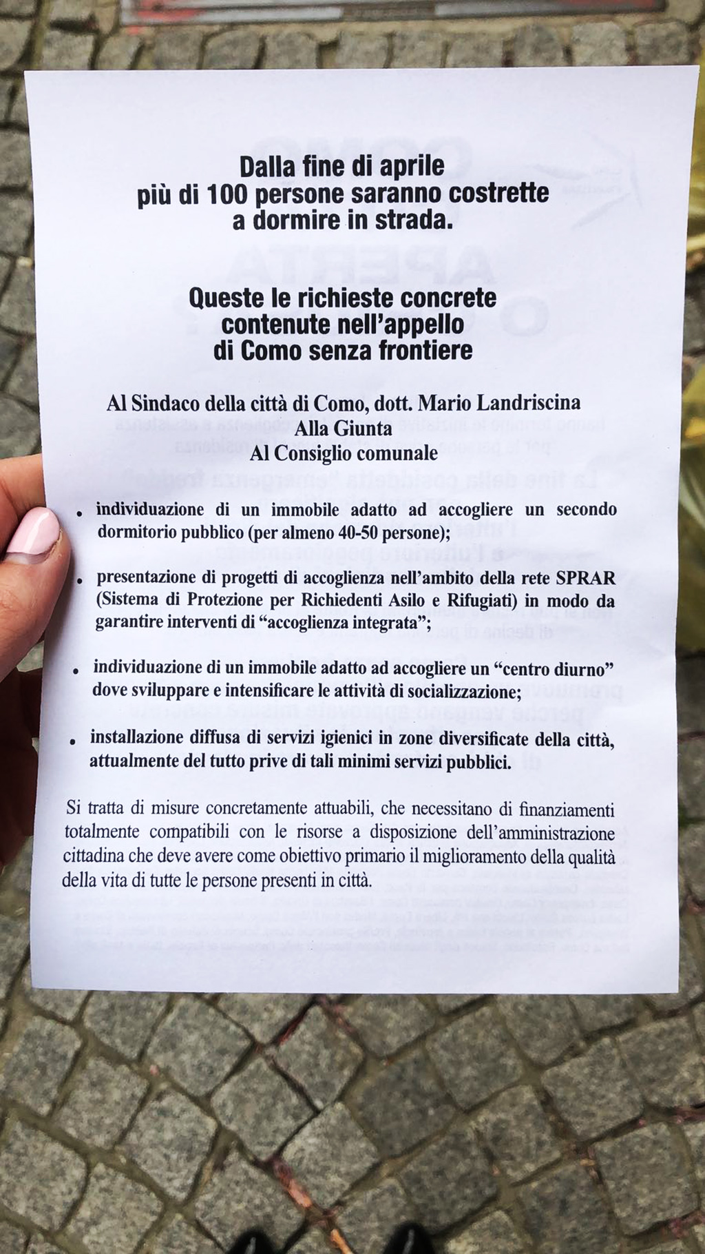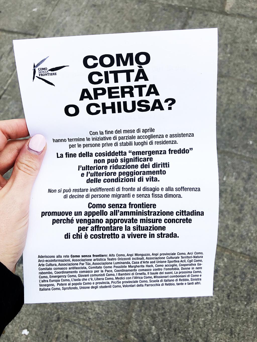 Manifestazione questa sera da parte degli attivisti in piazza Volta. “Con la fine del mese di aprile – spiegano – hanno termine le iniziative di parziale accoglienza e assistenza per le persone prive di stabili luoghi di residenza. La fine della cosiddetta “emergenza freddo” non può significare