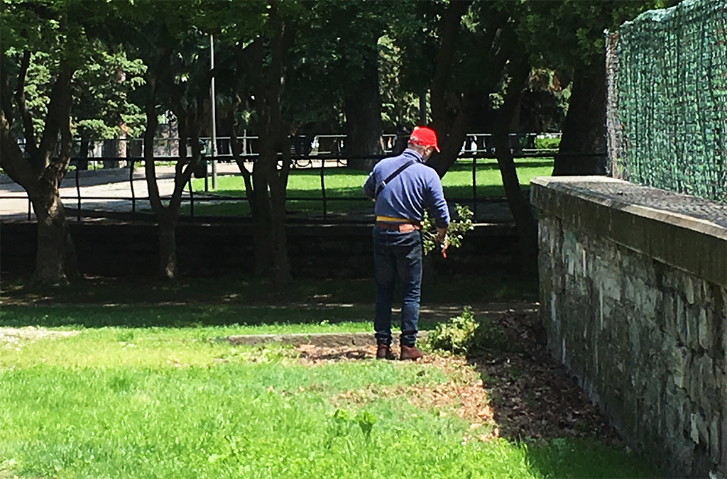 E poi pota i cespugli dei giardini per evitare che diventino gabinetti a cielo aperto, se non peggio. “Tutti questi ragazzi si lamentano, sa?! Ora non sanno più dove nascondersi. Non ha idea di cosa si trova li sotto”. Luigi ha pure anche pulito dalle erbacce la fontana di rocce dei giardini pubblici.