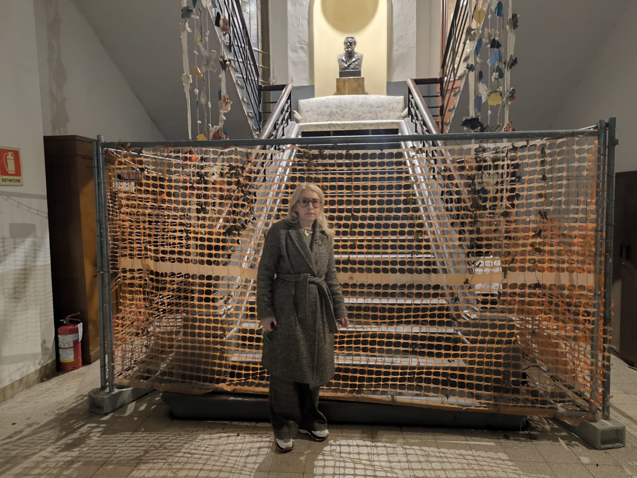 Si era già fatto buio da parecchio quando i tecnici del Comune stavano ancora sostituendo le serrature del civico 5. Mentre al civico 7 sono state blindate le scale che portano al primo piano, ritenuto parte integrante del civico 5: “Il problema è che così ci hanno impedito l’accesso alle nostre biblioteche” ha denunciato ancora la presidente. Ecco le scale dopo l’intervento.