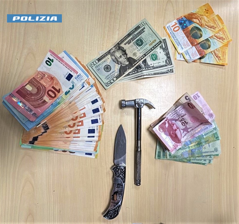 E proprio durante le operazioni di messa in sicurezza, che gli agenti, dall’ispezione sulla sua persona, gli hanno trovato addosso un coltello a serramanico, un martello, quasi tremila euro in contanti e banconote in valuta estera.