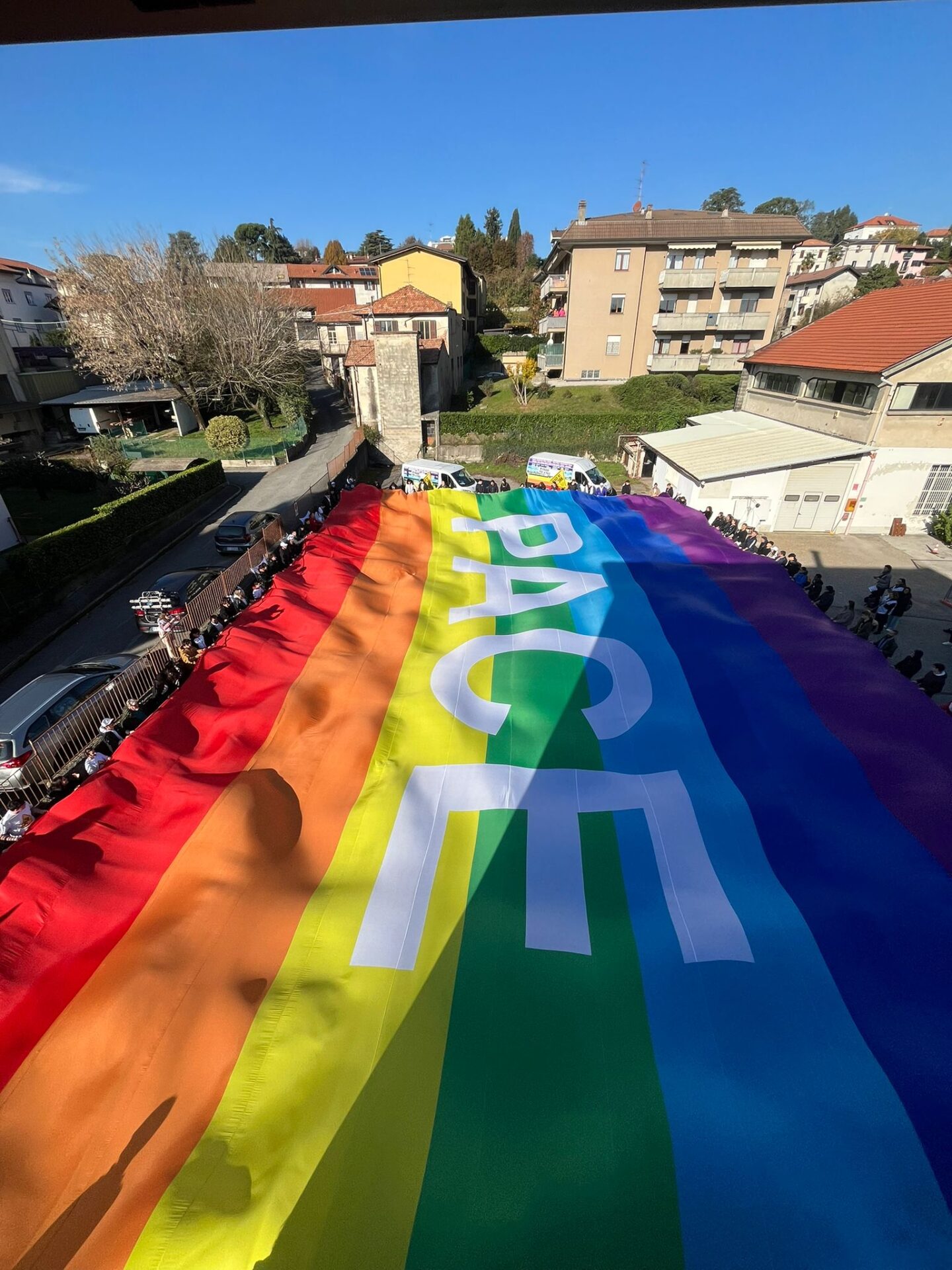 Anche qui, è stata srotolata la bandiera della pace con tutti i presenti, suscitando grande impatto visivo ed emozionale, dove tutti si riuniti in uno spirito di unità, fratellanza, speranza di pace. Abbiamo scelto di essere presenti a Rebbio, condividendo il progetto di Don Giusto Della Valle, un progetto di accoglienza e ospitalità di migranti che si dirama in una grande rete territoriale, svolta nello spirito di fraternità e nell’ambito della missione educativa, di formazione e di supporto nella ricerca di lavoro e di abitazione.
