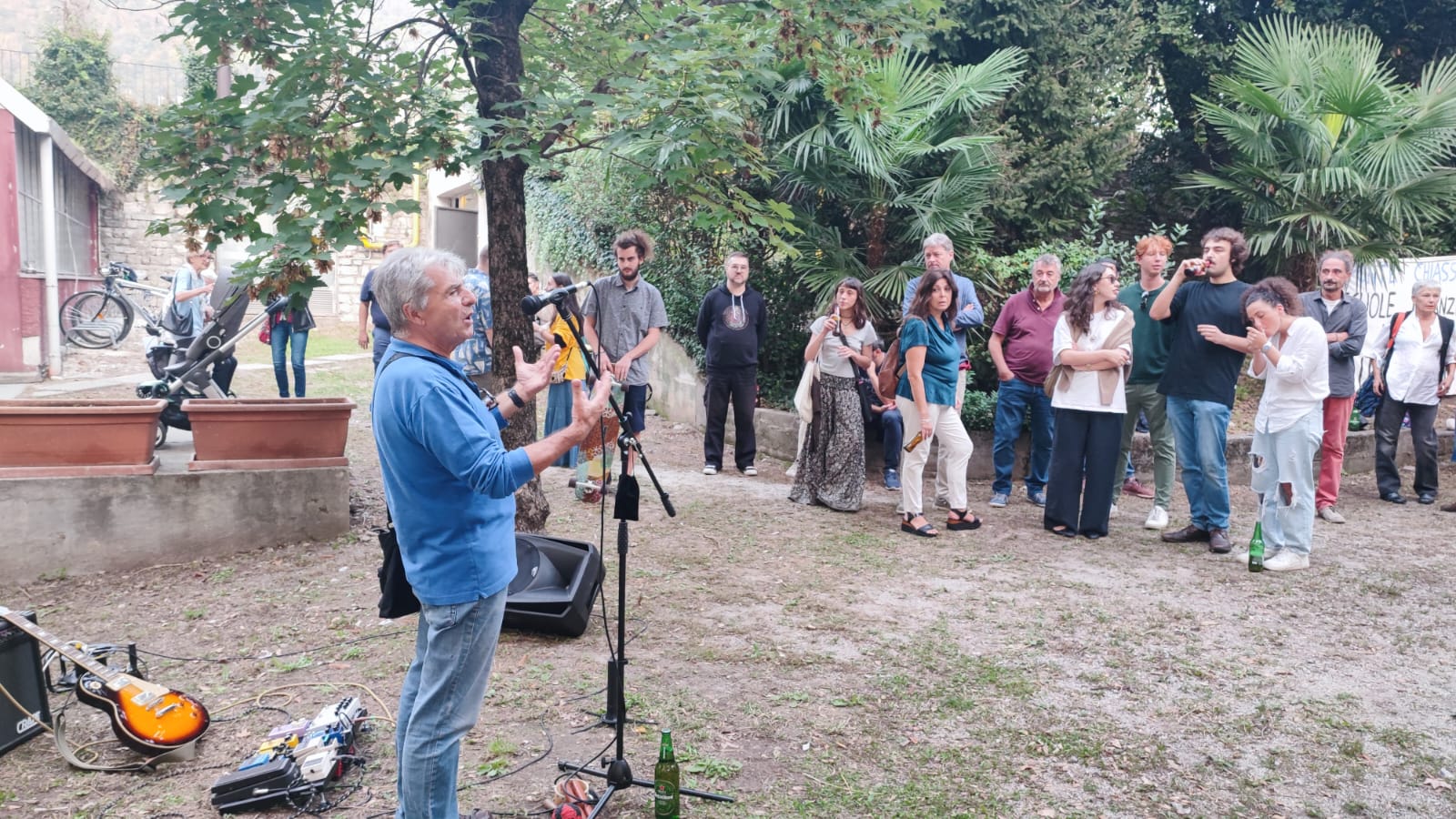 Tutti a fianco di Renato Fumagalli, vicepresidente dei Combattenti, vera anima delle proteste contro la chiusura. Prima della musica, Renato ha preso brevemente la parola: “Grazie ragazze, grazie ragazzi e grazie a tutti per la vicinanza. Voglio solo dire questo, non mi pare che qui non ci sia democrazia, non mi pare che qui ci siano antidemocratici. Semmai vedo il contrario”. Chiaro riferimento alle parole del sindaco che, a proposito di questa vicenda, si è addirittura spinto a dire che il caso Bocciofila: “Mette in discussione la democrazia. Parentesi vergognosa”. Ha aggiunto così Renato: “Rapinese ha tirato in ballo pure la Repubblica e, se ho capito, per il sindaco noi siamo contro la Repubblica”. Il primo cittadino infatti ha anche detto: “Si è espressa la Repubblica, anziani abusivi” (qui trovate il discorso integrale del sindaco).