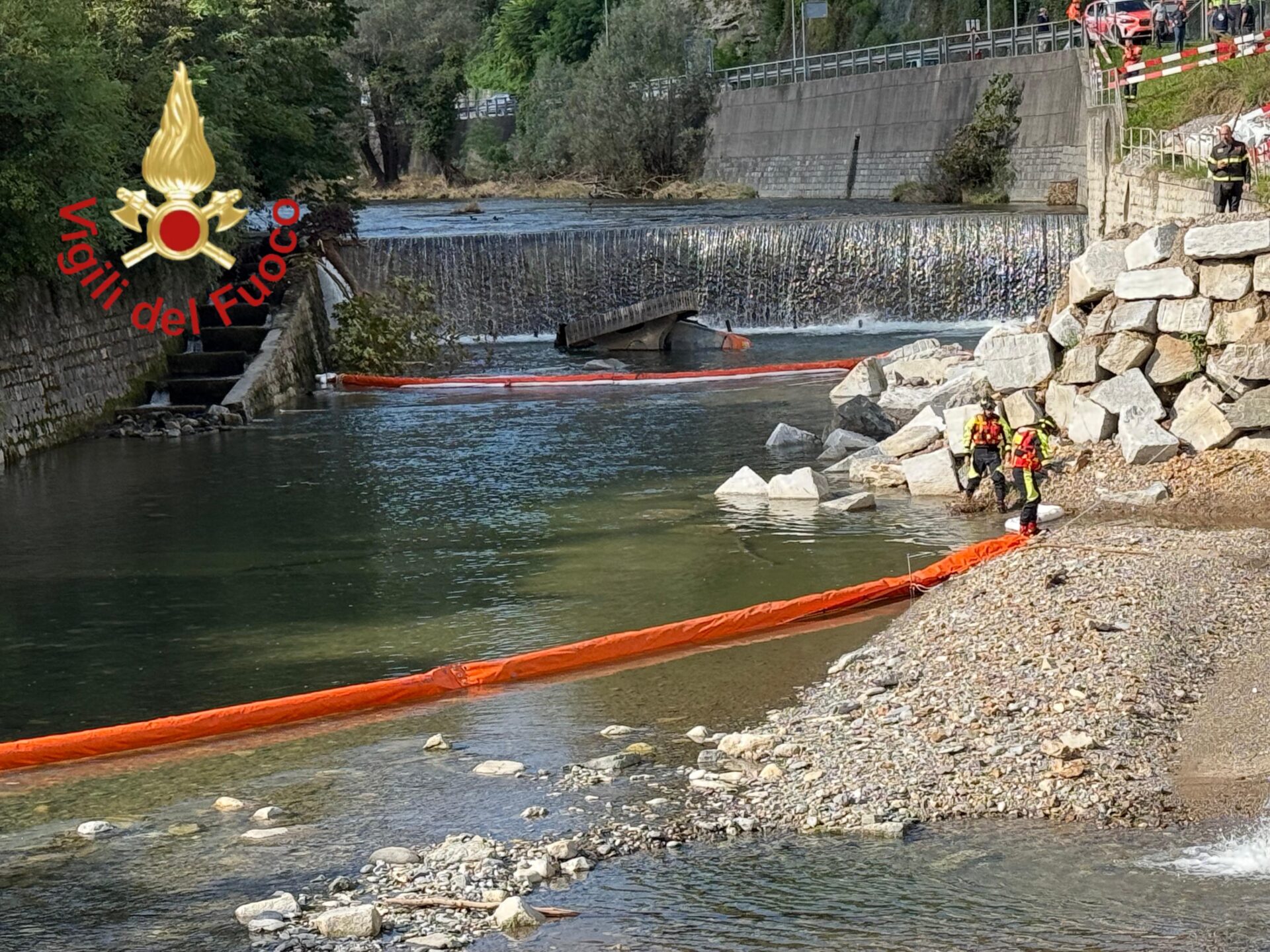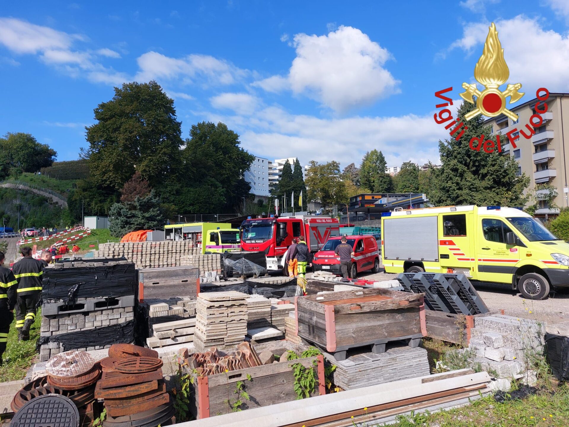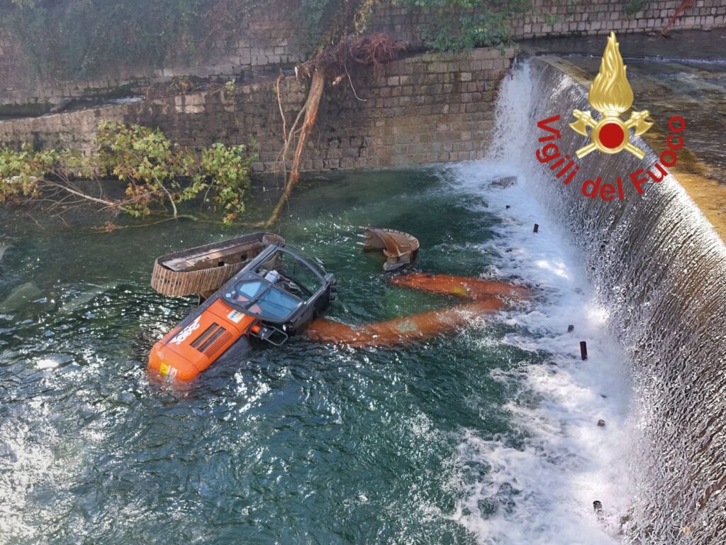 Intervento dei vigili del fuoco di Como oggi, giovedì 2 ottobre attorno alle ore 10.30, in collaborazione con i pompieri del Mendrisiotto, nel comune di Maslianico, per il ribaltamento di un escavatore all’interno del torrente Breggia in territorio elvetico.