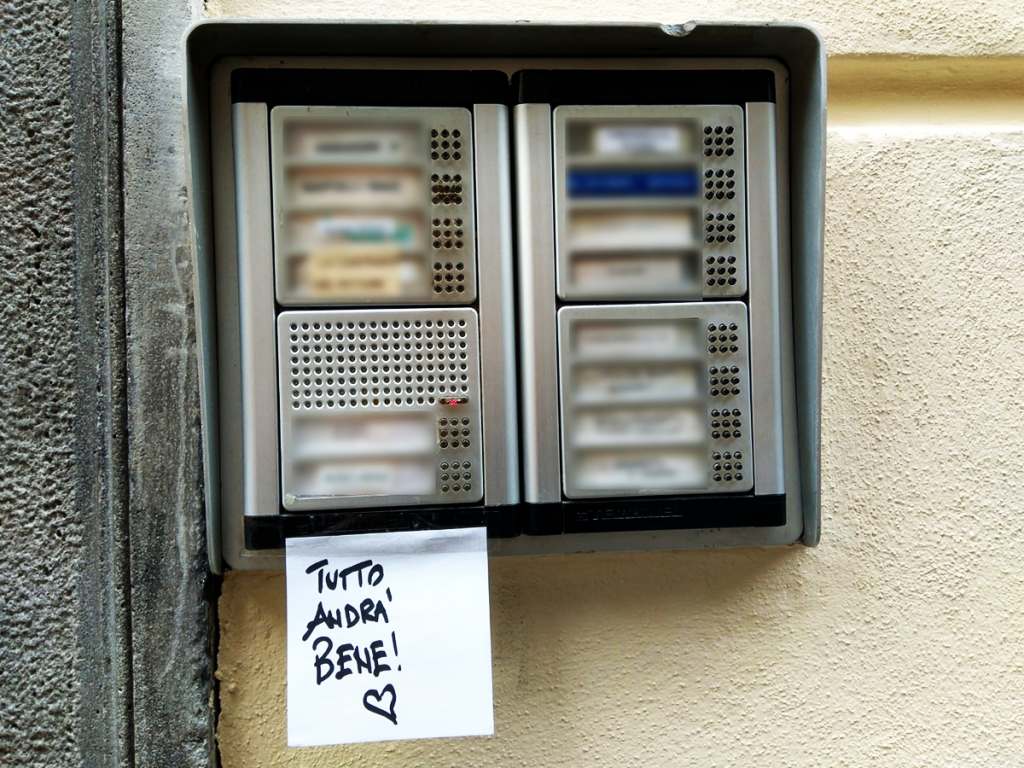 E poi, in alcune attività o sui citofoni di case private, ecco spuntare i primi messaggi di speranza con lo slogan “andrà tutto bene”.