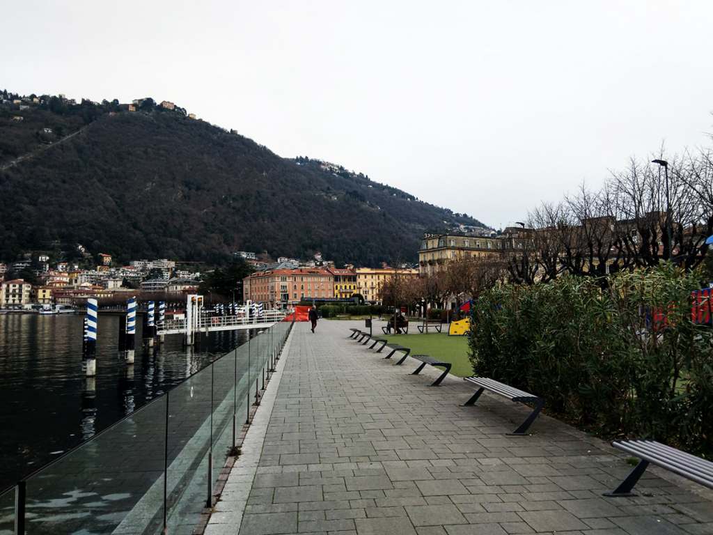 Camminando dal centro verso il Tempio Voltiano, la passeggiata che costeggia il lago è quasi completamente libera.