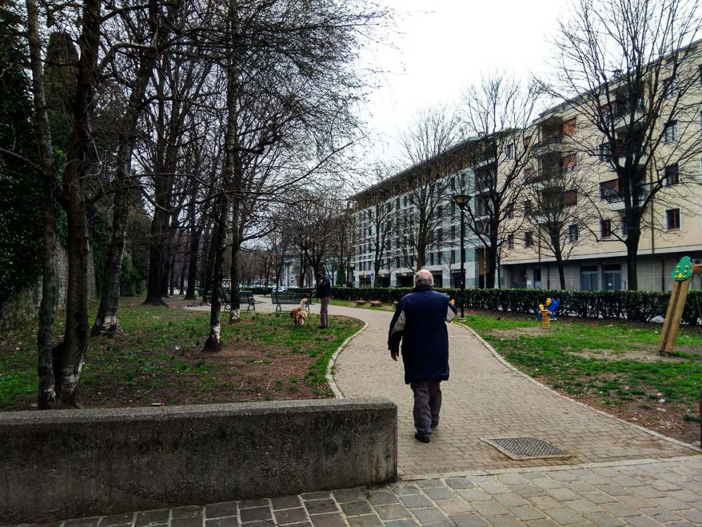 Chi ai giardini di Viale Varese, a spasso con il cane al guinzaglio.