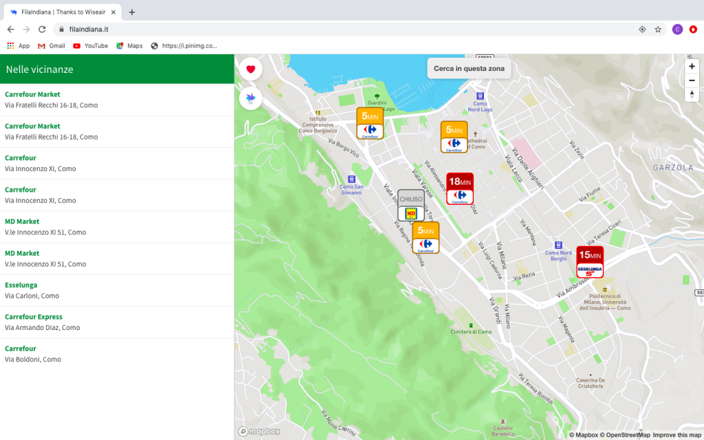 A Como, ad esempio, sono mappati tutti i Carrefour cittadini, compresi quelli della città murata, l’MD e l’Esselunga di via Carloni mentre, appena fuori città, troviamo i supermercati Bennet e la Coop.