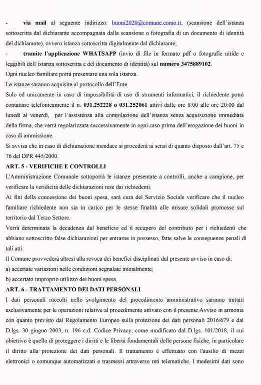 È possibile inviare la domanda via email all’indirizzo buoni2020@comune.como.it oppure tramite Whatsapp al numero 3475889102.