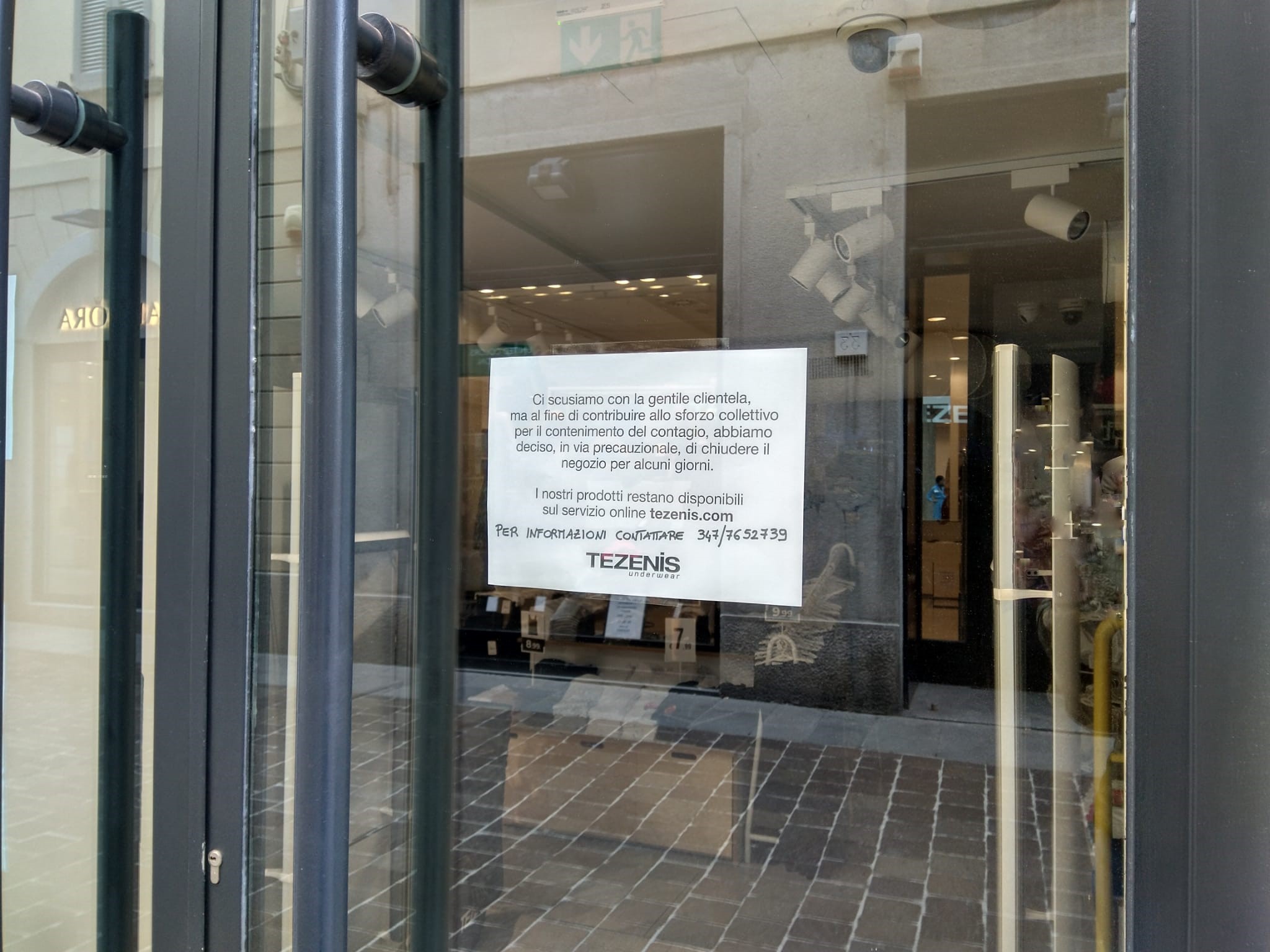 Ma ci sono anche i negozi dei grandi gruppi come Intimissimi, Calzedonia, Tezenis che in centro Como restano chiusi “al fine di contribuire allo sforzo collettivo per il contenimento del contagio” – come si legge sui cartelli apposti sulle vetrine.