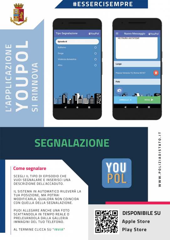 YouPol. L’app della Polizia di Stato per smartphone si aggiorna prevedendo la possibilità di segnalare i reati violenti che si consumano tra le mura domestiche.