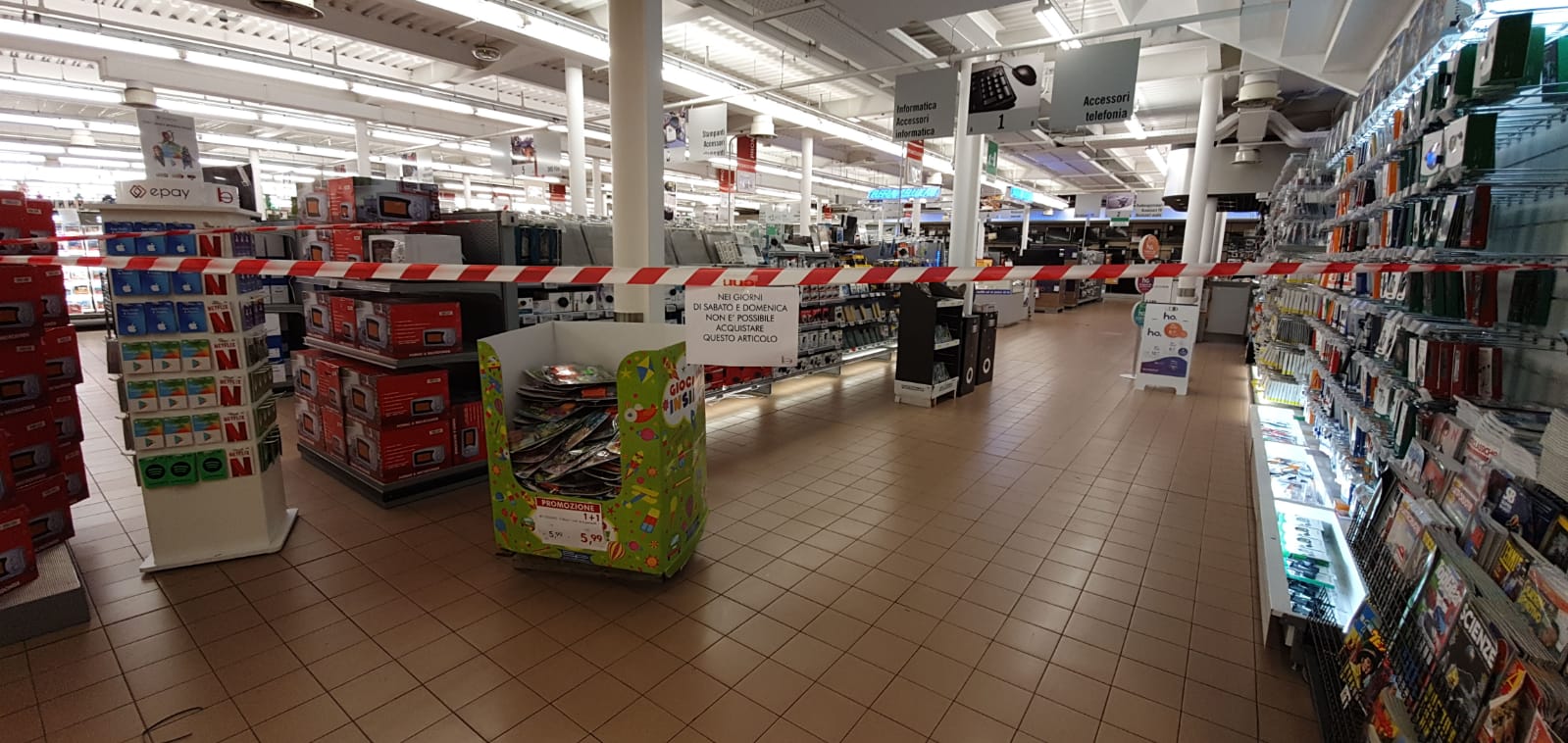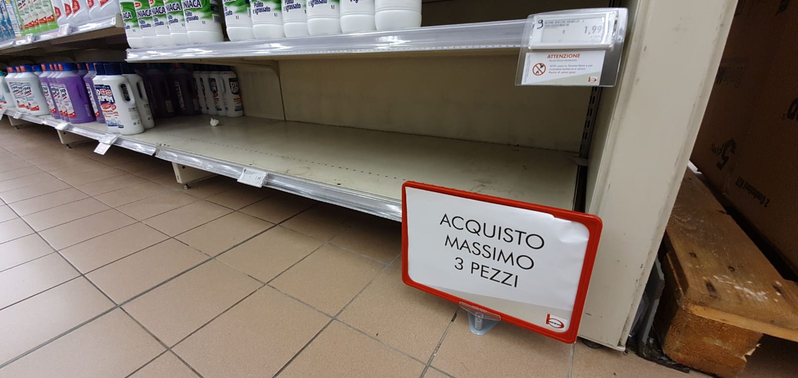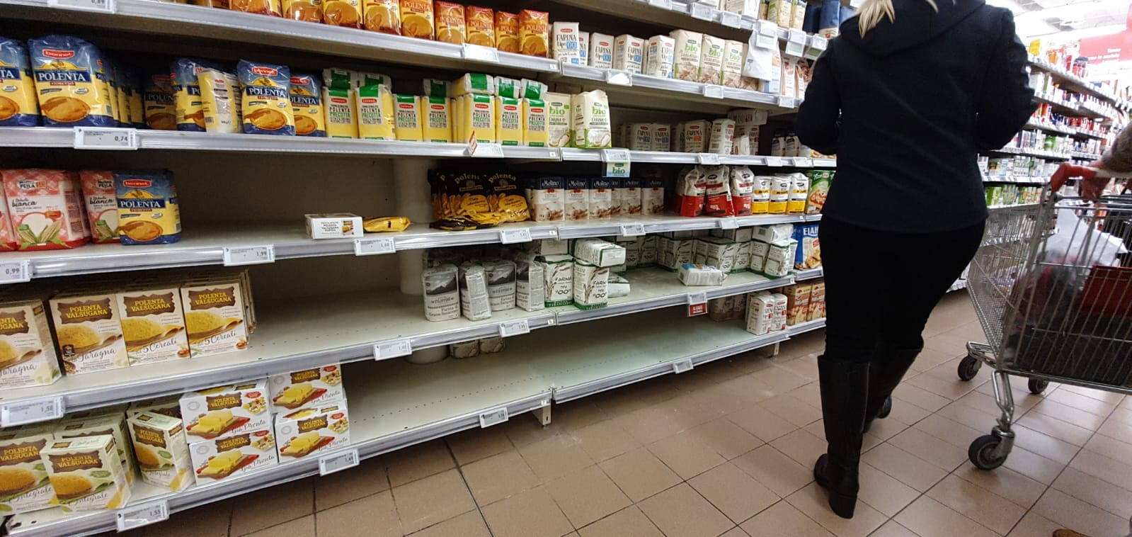 E all’interno dei supermercati, interi reparti sono sbarrati dal classico nastro bianco e rosso per segnalare tutta la merce che non si può vendere.