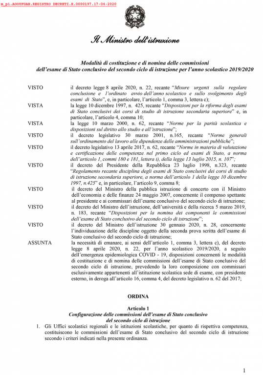 Spiega Azzolina su Fb: “Ieri sera ho firmato la prima ordinanza che riguarda gli Esami di Stato del secondo ciclo. Come avevo anticipato anche in Parlamento, abbiamo modificato la commissione: tutti i 6 membri che la compongono saranno interni. Solo il presidente sarà esterno. Gli studenti avranno un esame serio, vero, ma saranno valutati da chi ne conosce il percorso scolastico. Dobbiamo tenere conto di questo anno particolare”