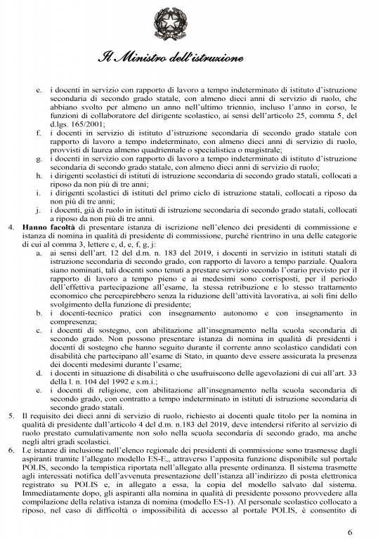 La commissione sarà formata da sei commissari interni e un presidente esterno.