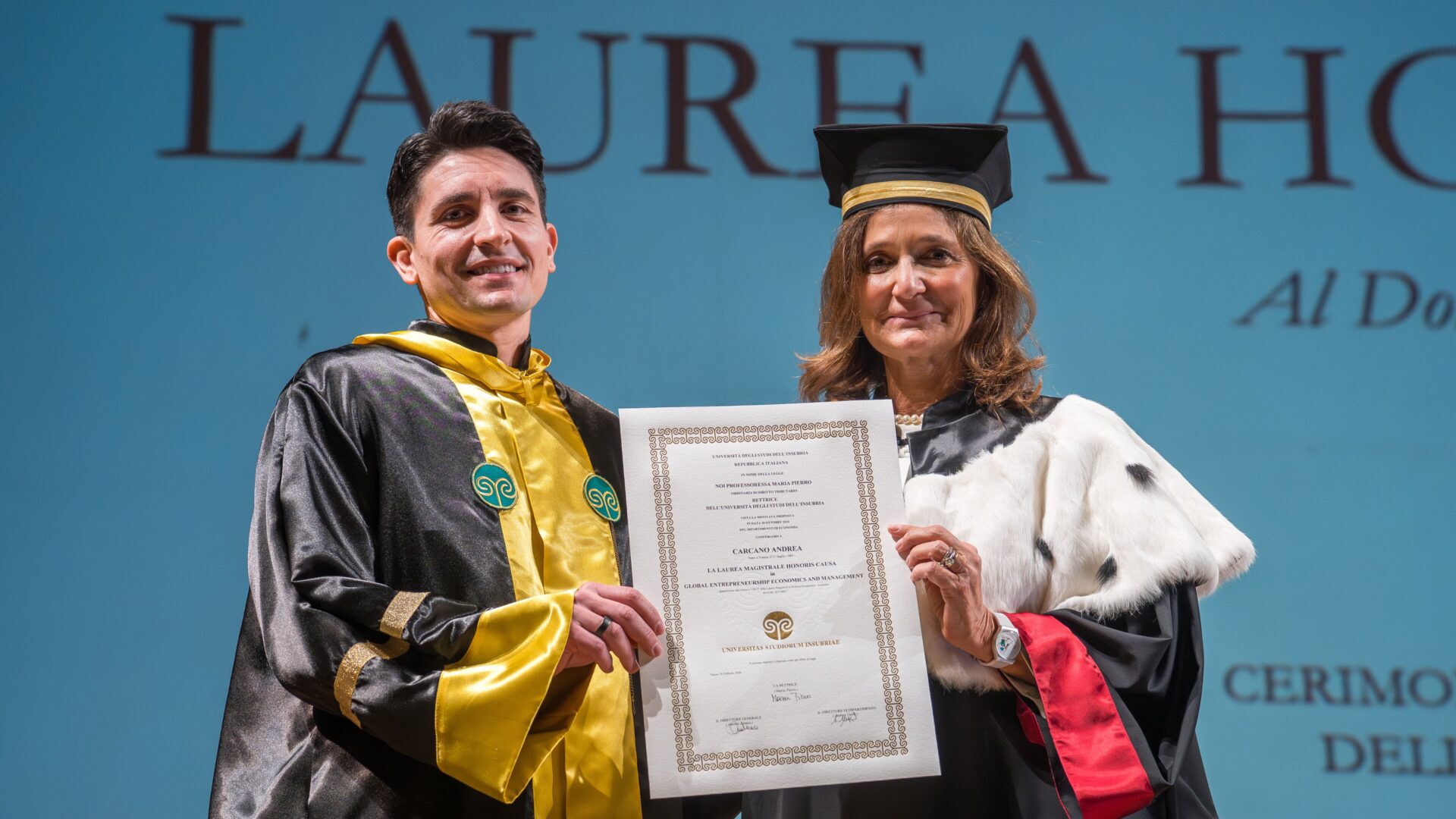 A introdurre il conferimento è stato il professor Alberto Onetti, che nella sua prolusione ha sottolineato come la storia imprenditoriale di Carcano e Carullo rappresenti un caso emblematico di ricerca di altissimo livello sviluppata in Italia e valorizzata su scala globale, evidenziando al tempo stesso le difficoltà del sistema europeo nel trasformare l’innovazione accademica in impresa.