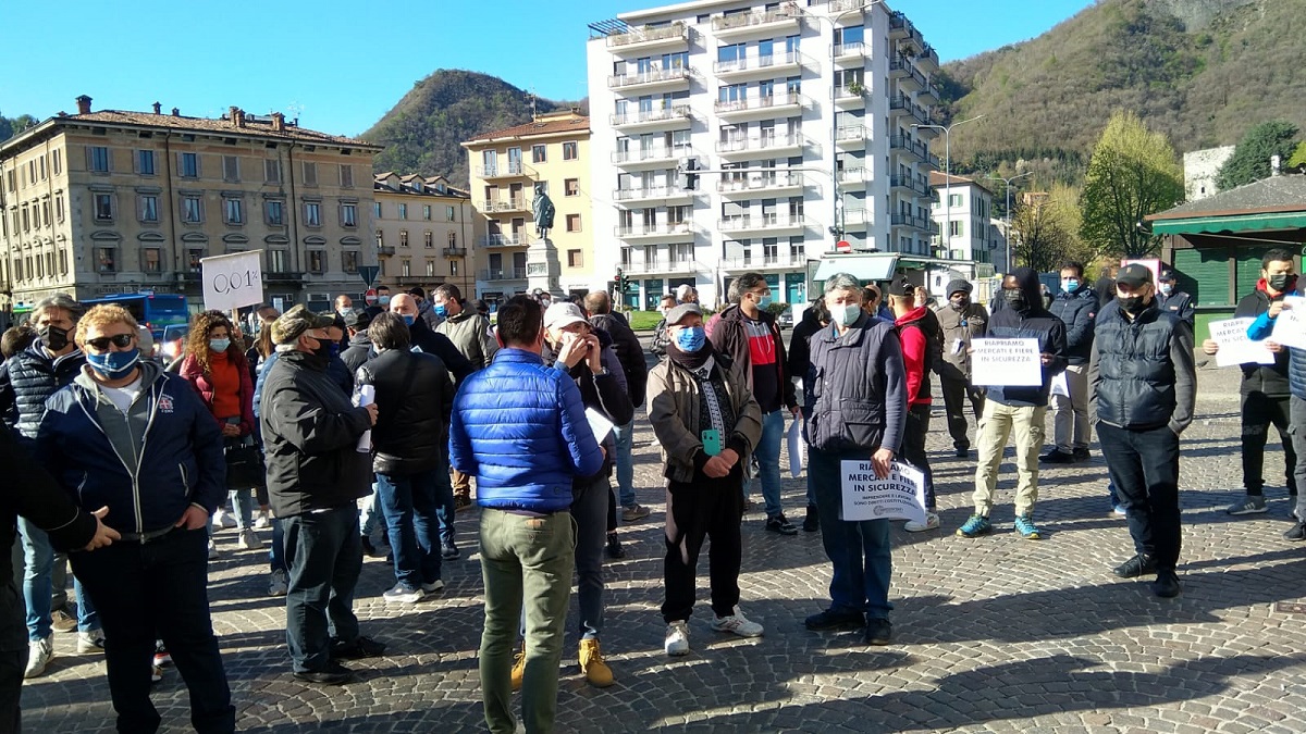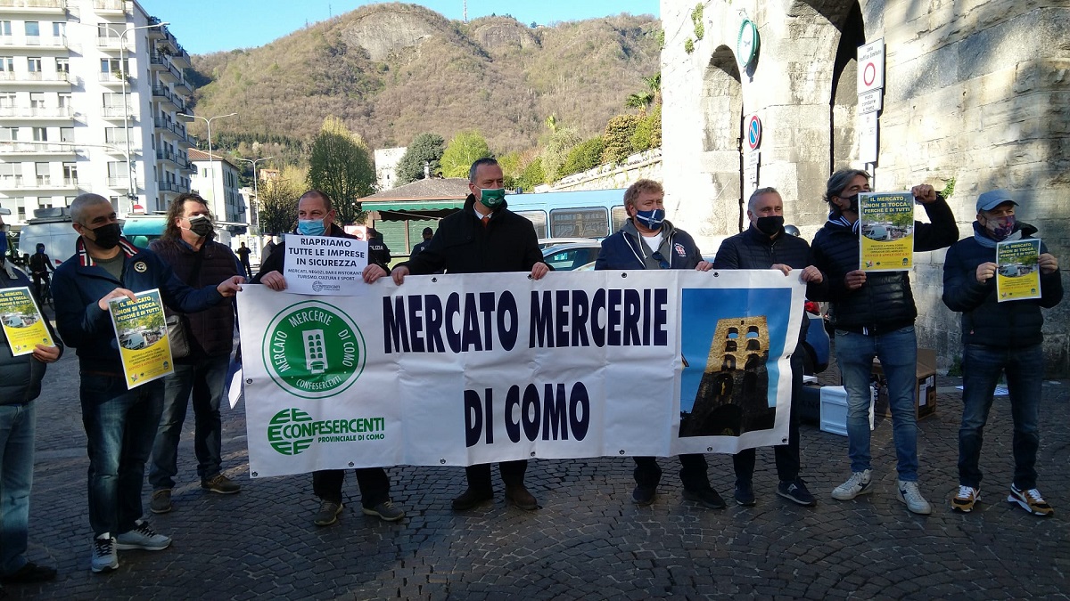 Nuova protesta di Confesercenti Como oggi nella zona di Porta Torre.
