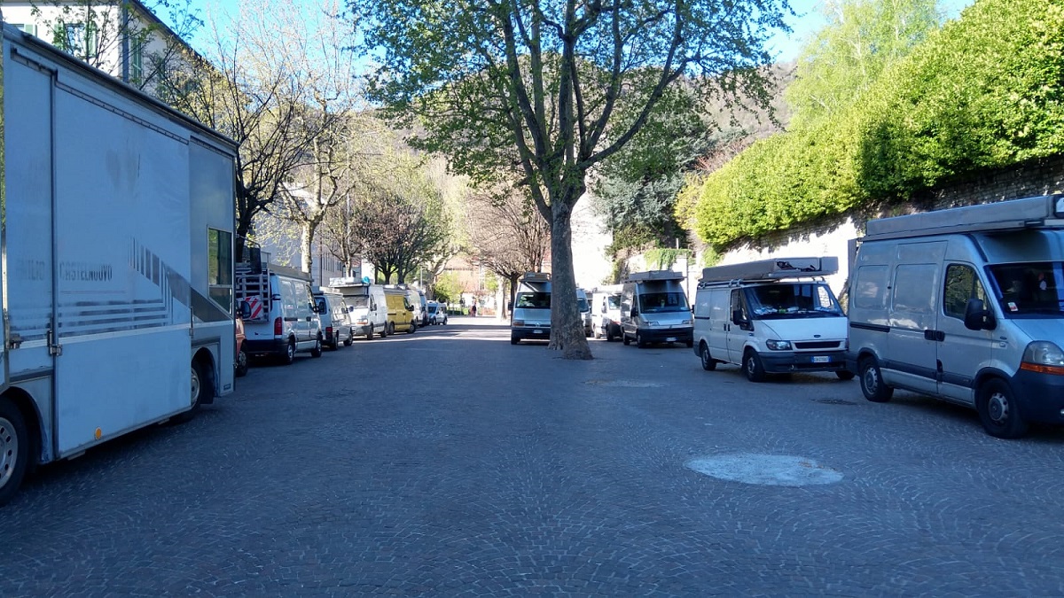 Sono infatti schierati anche i furgoni dei lavoratori come ulteriore gesto simbolico per sottolineare l’esasperazione. I banchi sono aperti come in un normale giorno di mercato, ma senza alcuna merce esposta.