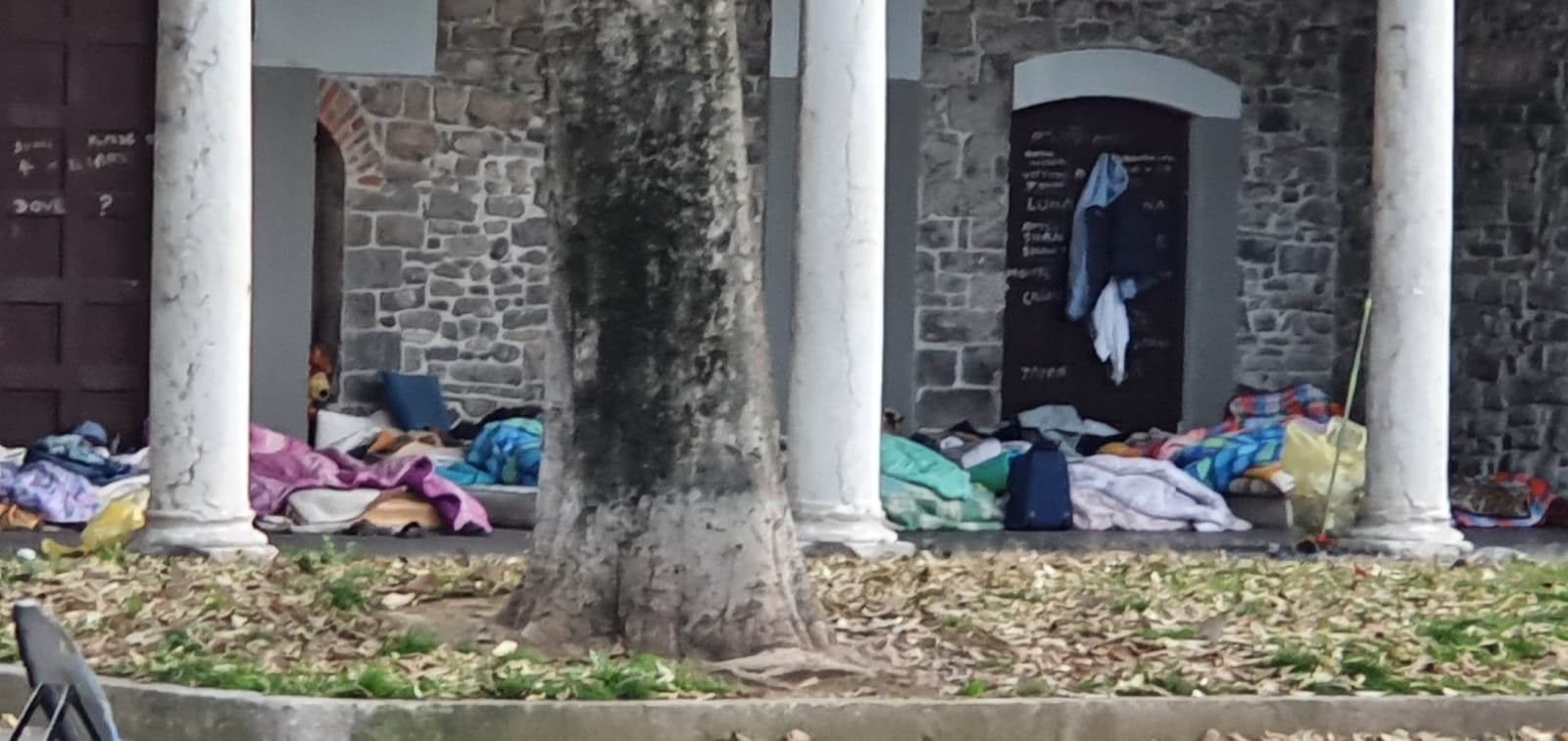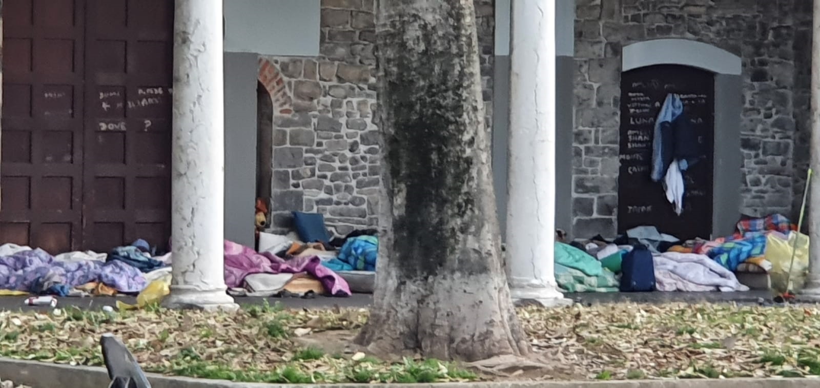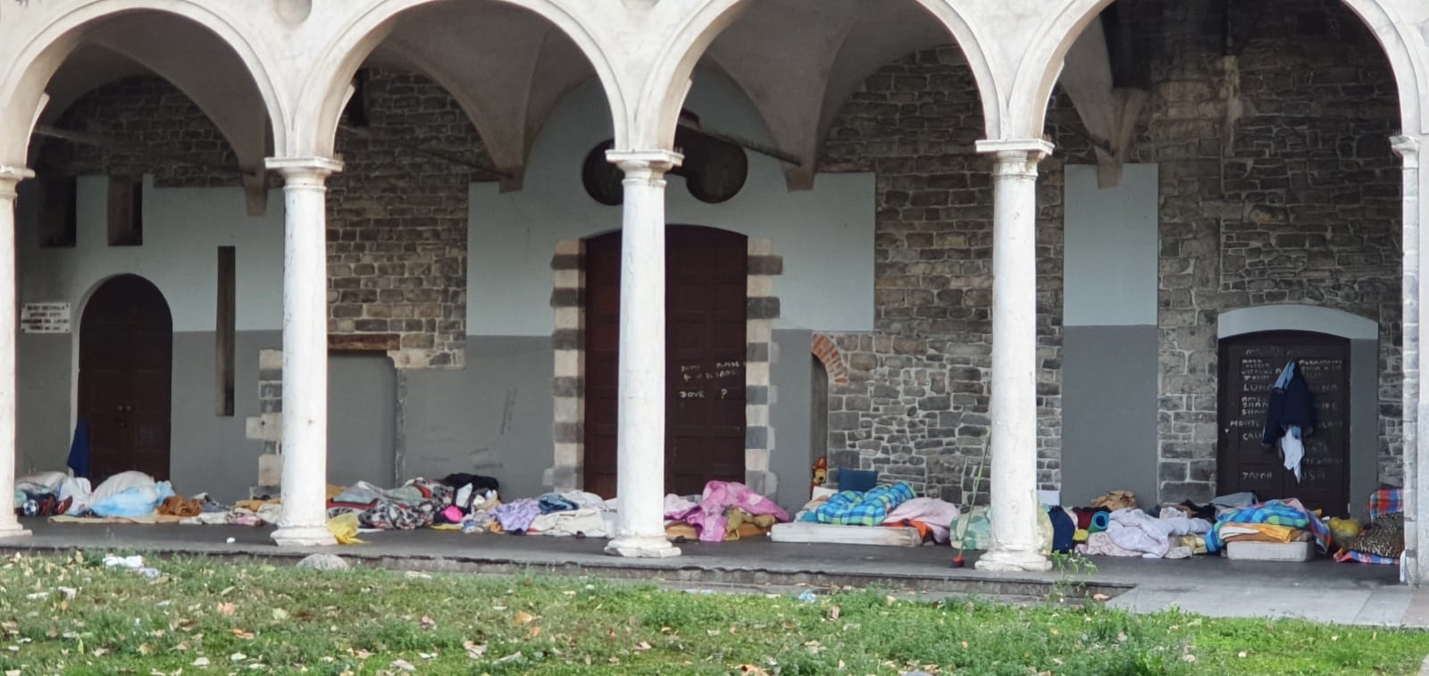 La situazione sotto i portici dell’ex Chiesa di San Francesco a Como è drammatica e chiarissima.