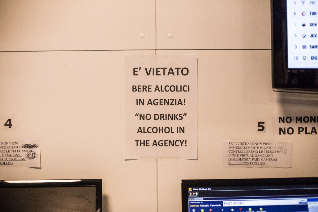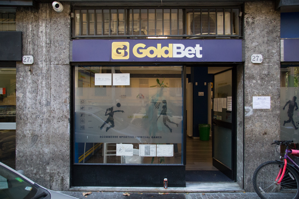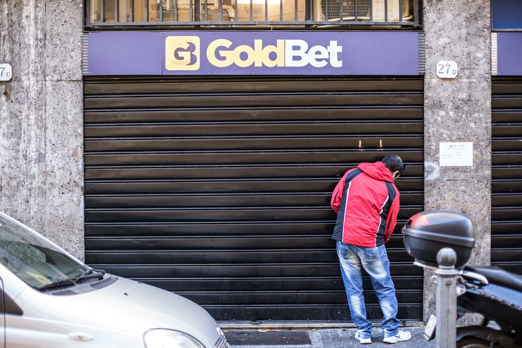 Di fianco al bar, Salvatore Gusmano, solleva la saracinesca della sua sala scommesse GoldBet per l’apertura. Il nuovo-vecchio orario di chiusura alle 20 è stampigliato ben visibile all’entrata.