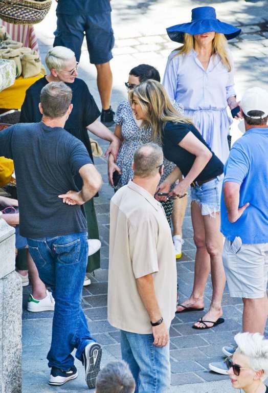 Jennifer Aniston, bellissima e in gran forma, aveva un paio di shorts di jeans, una maglietta scura, sandali rigorosamente senza tacco e non ha tradito le attese anche se per i fans (tantissimi, accalcati alle transenne tutte intorno) sarà molto dura poterla intravedere visto l’enorme spiegamento di sicurezza attorno al set.
