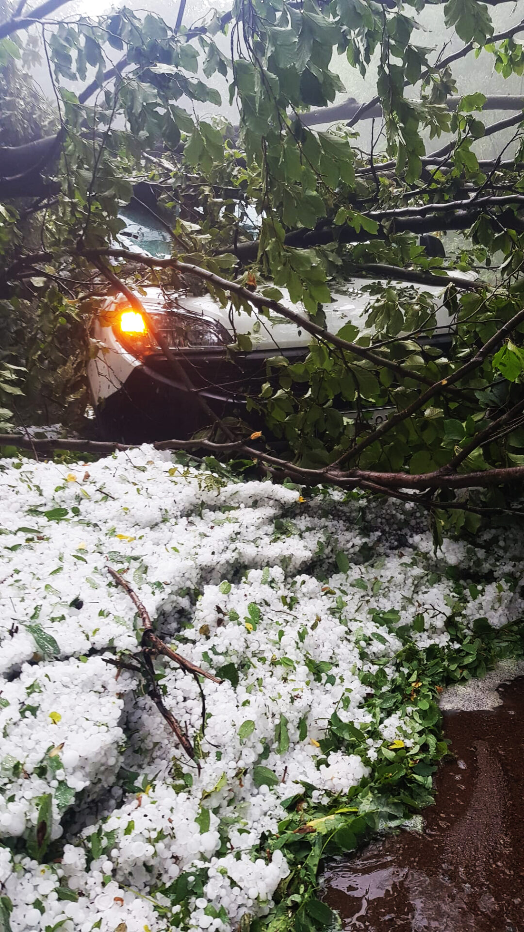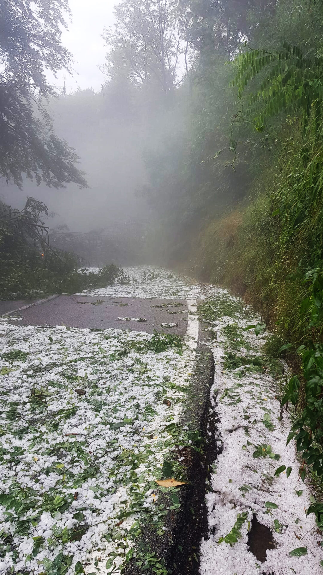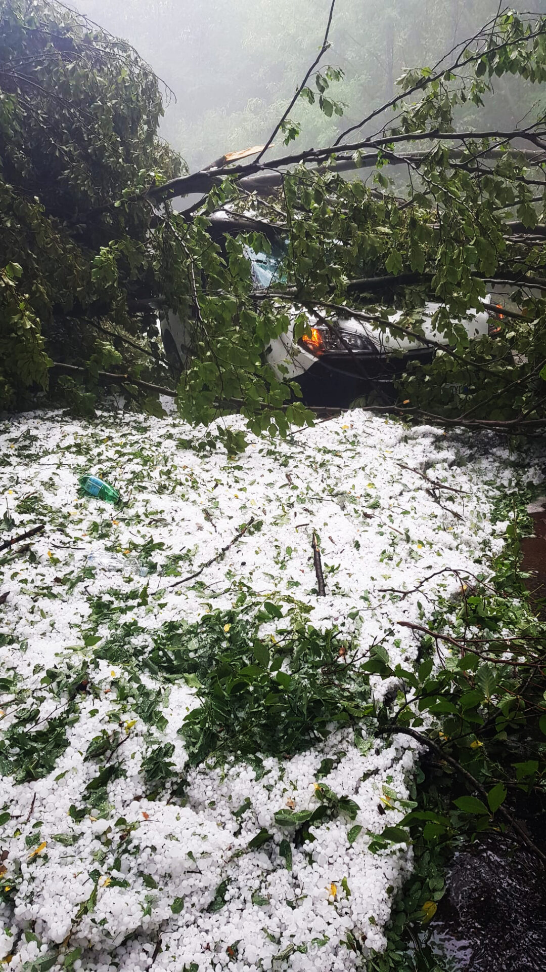 La giga grandinata attesa per oggi si è affacciata in provincia di Varese (per ora). Ecco le foto di un lettore da Grantola dove si mostra tutta la potenza del rovescio: albero caduto su un furgone di Ats, strada imbiancata e chicchi grandi come biglie, quelle grosse: