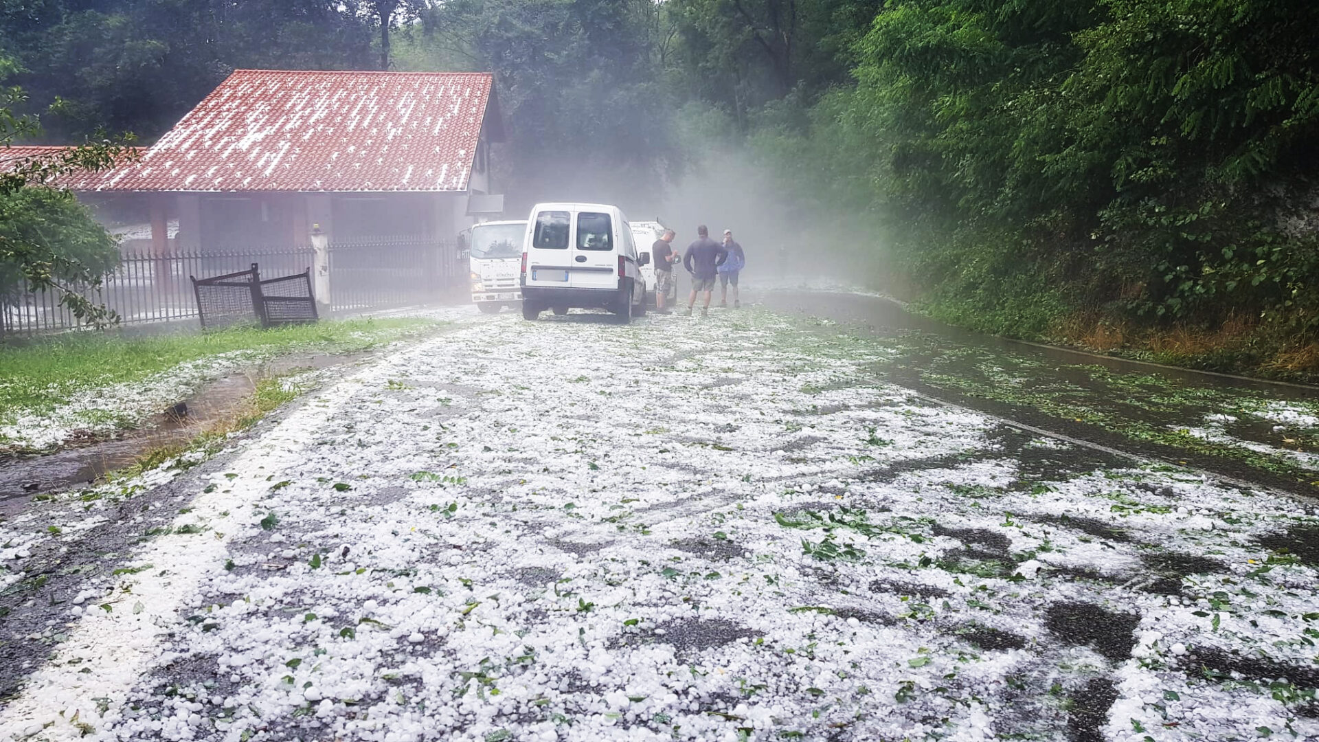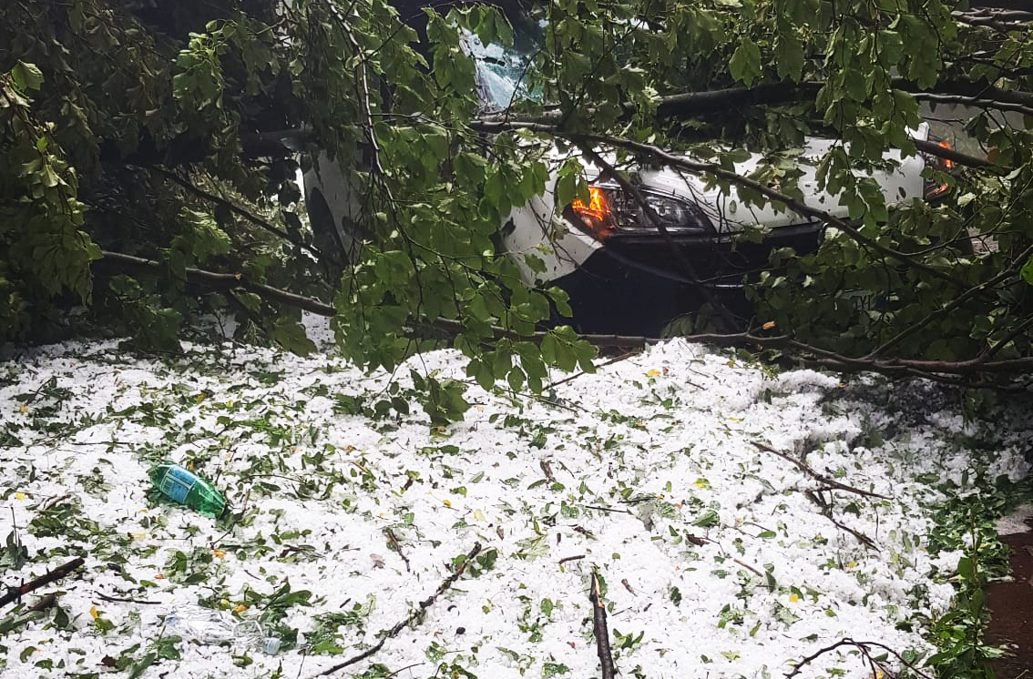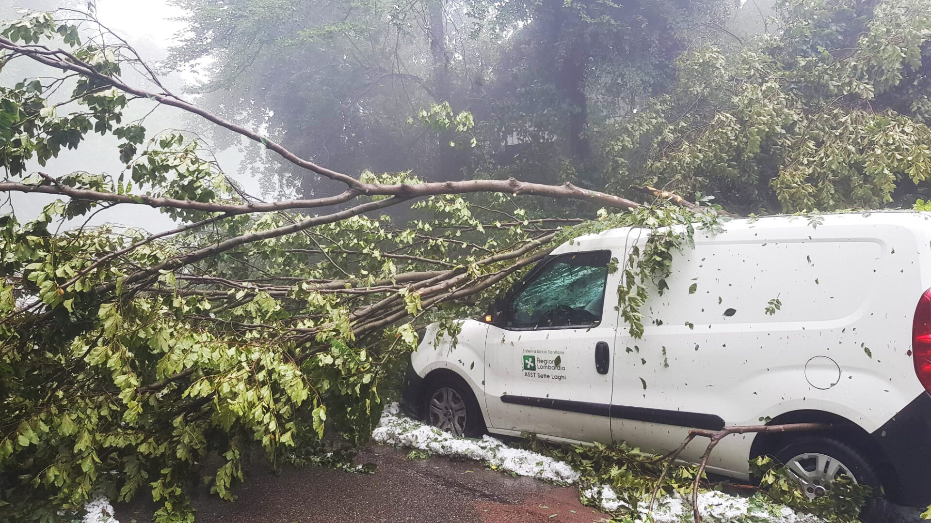 La giga grandinata attesa per oggi si è affacciata in provincia di Varese (per ora). Ecco le foto di un lettore da Grantola dove si mostra tutta la potenza del rovescio: albero caduto su un furgone di Ats, strada imbiancata e chicchi grandi come biglie, quelle grosse: