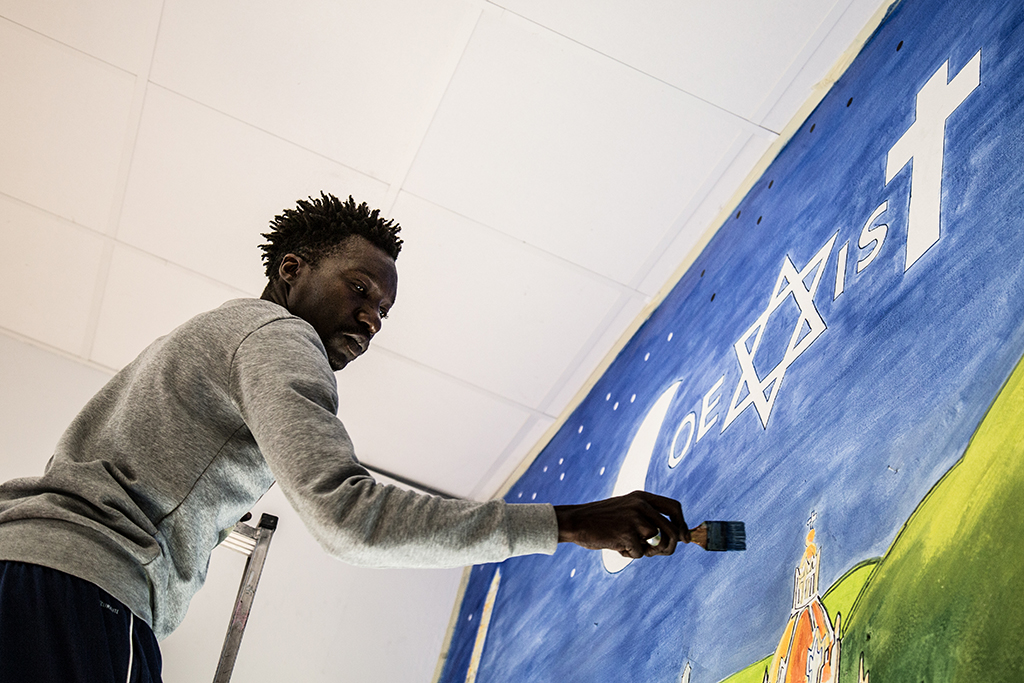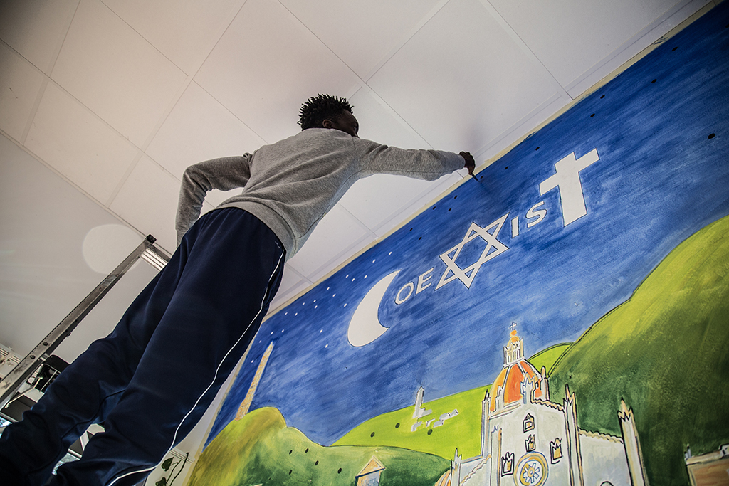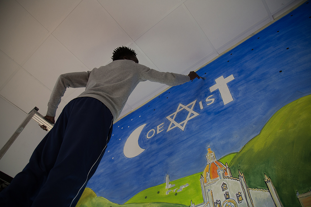 Ingresso dell’oratorio con simbolo cattolico, islamico e ebraico: tutti insieme