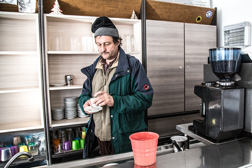 La dignità è talmente ovvia che non va restituita: la si trova in una mappa di segni diagonali perfetti, rughe che scavano sorriso. Rebbio, parrocchia di frontiera, aperta a quelle che un linguaggio polare, violentemente tecnico inquadra nelle “gravi marginalità”.