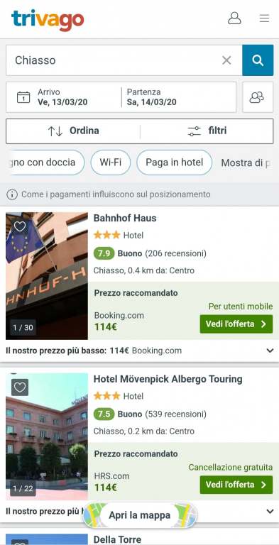 Proviamo su Trivago, giusto per avere una panoramica più ampia? Due camere, oppure si dorme in Italia.