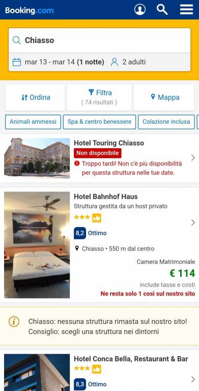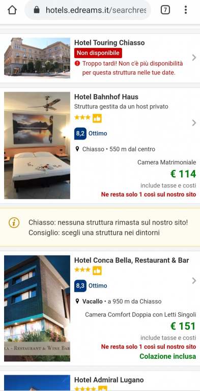 Nessuna velleità, solo una piccola prova per capire cosa succede se per caso provassimo a prenotare una camera per stanotte, venerdì, in quel di Chiasso, Canton Ticino.