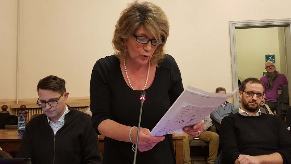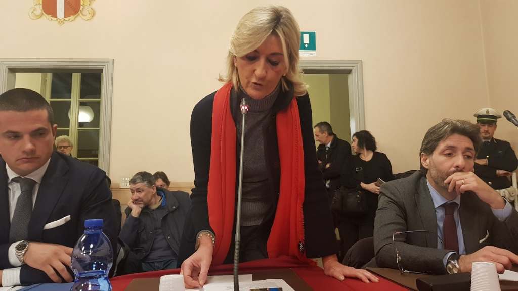 Poi, in particolare, abbiamo scelto due figure simboliche: Elena Canova, nella foto in copertina, autrice di un appassionato discorso e più giovane tra le rappresentanti di Palazzo Cernezzi. E poi Sabrina Del Prete, che contro la violenza sulle donne ha pronunciato uno dei suoi rarissimi discorso davanti all’assemblea riunita in seduta ufficiale. Lo pubblichiamo integralmente di seguito.