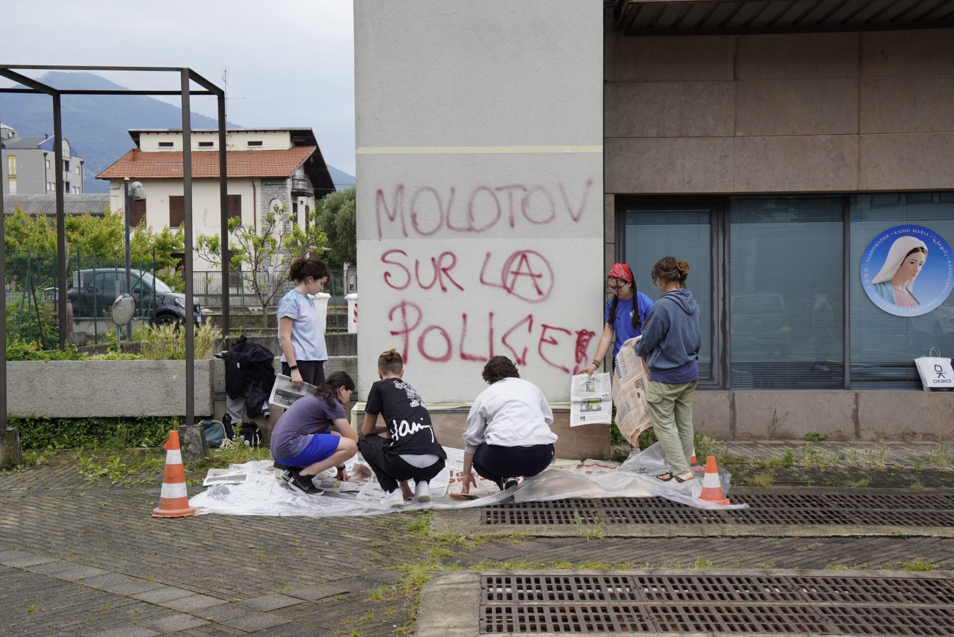 Nella giornata di venerdì, come si diceva, la città di Erba si è svegliata con nuove scritte anarchiche e una minaccia verso Lo Snodo e l’intervento civico di pulizia effettuato sabato. La risposta de Lo Snodo è stata immediata: prima la denuncia ai carabinieri e, successivamente, l’annuncio che l’attività si sarebbe svolta lo stesso. I ragazzi hanno così contrapposto la civiltà e la partecipazione (a volto scoperto) alle minacce e all’anonimato.