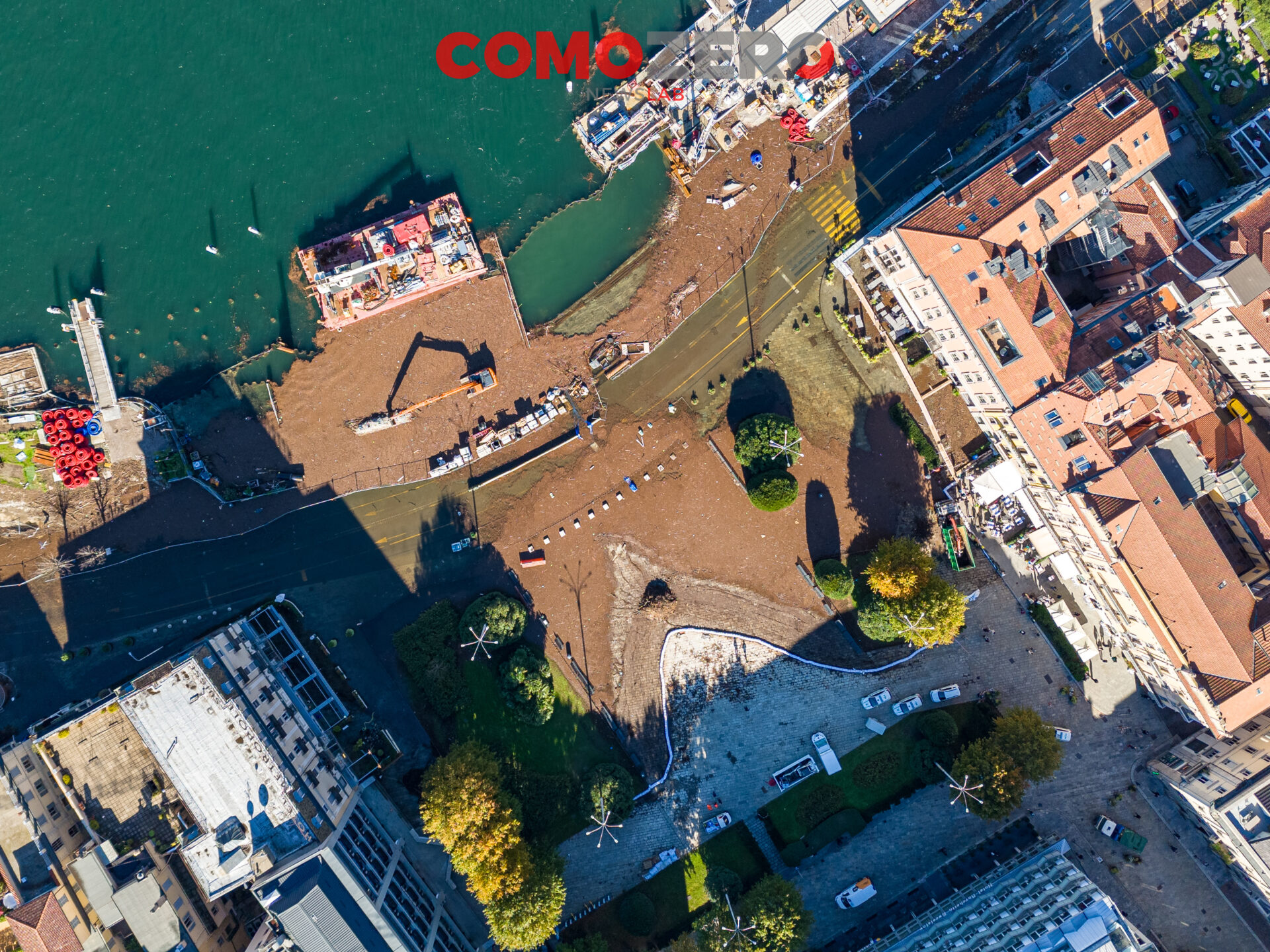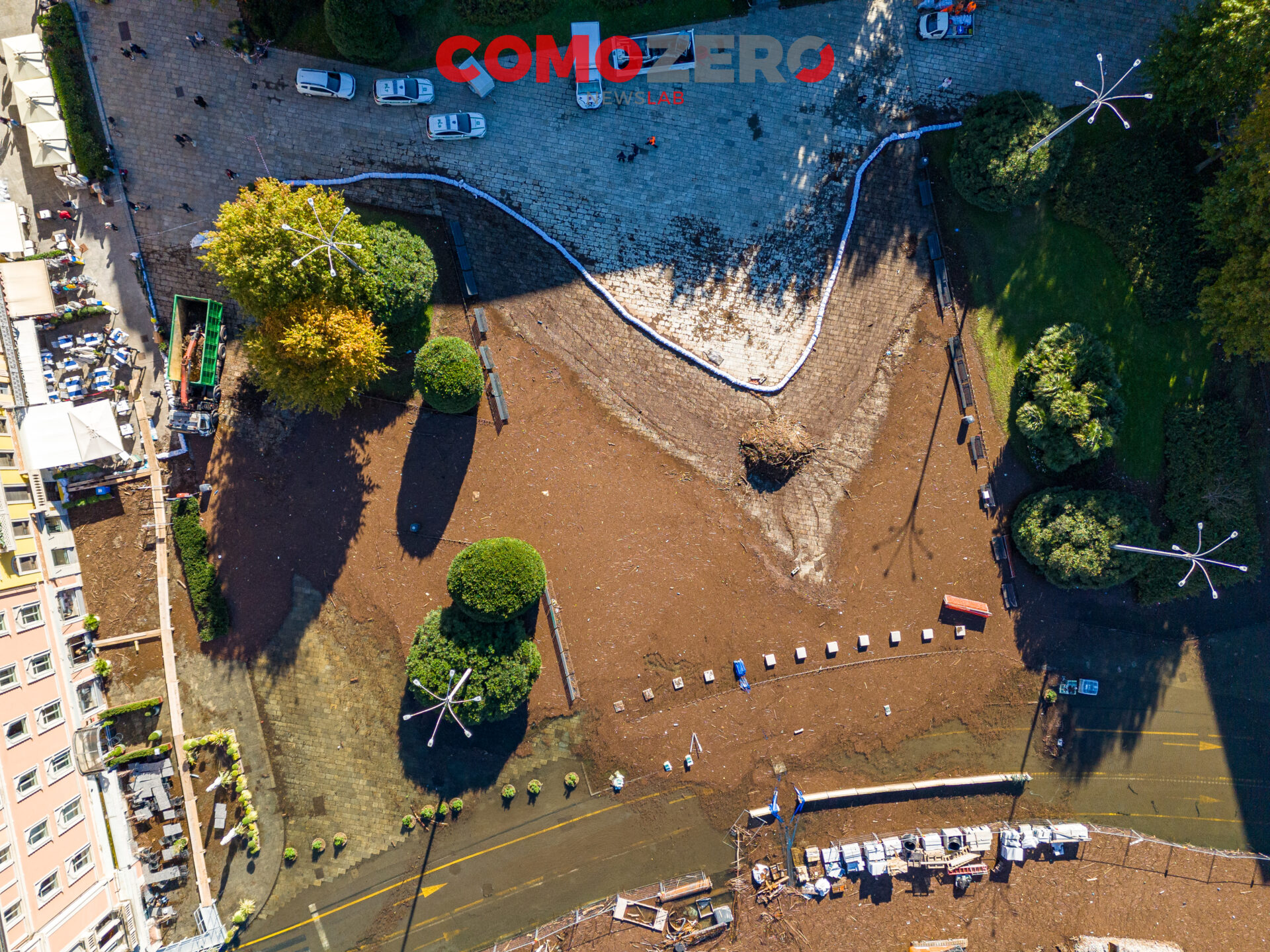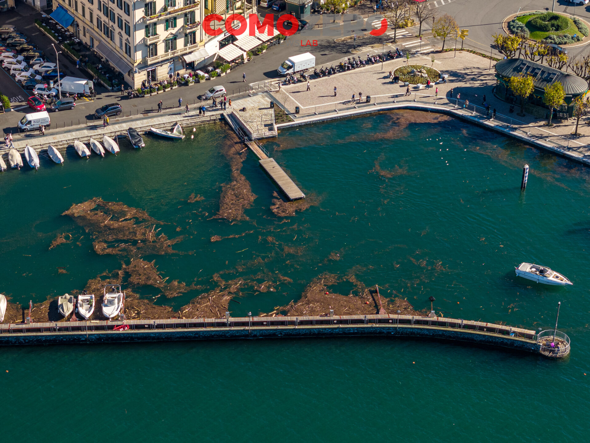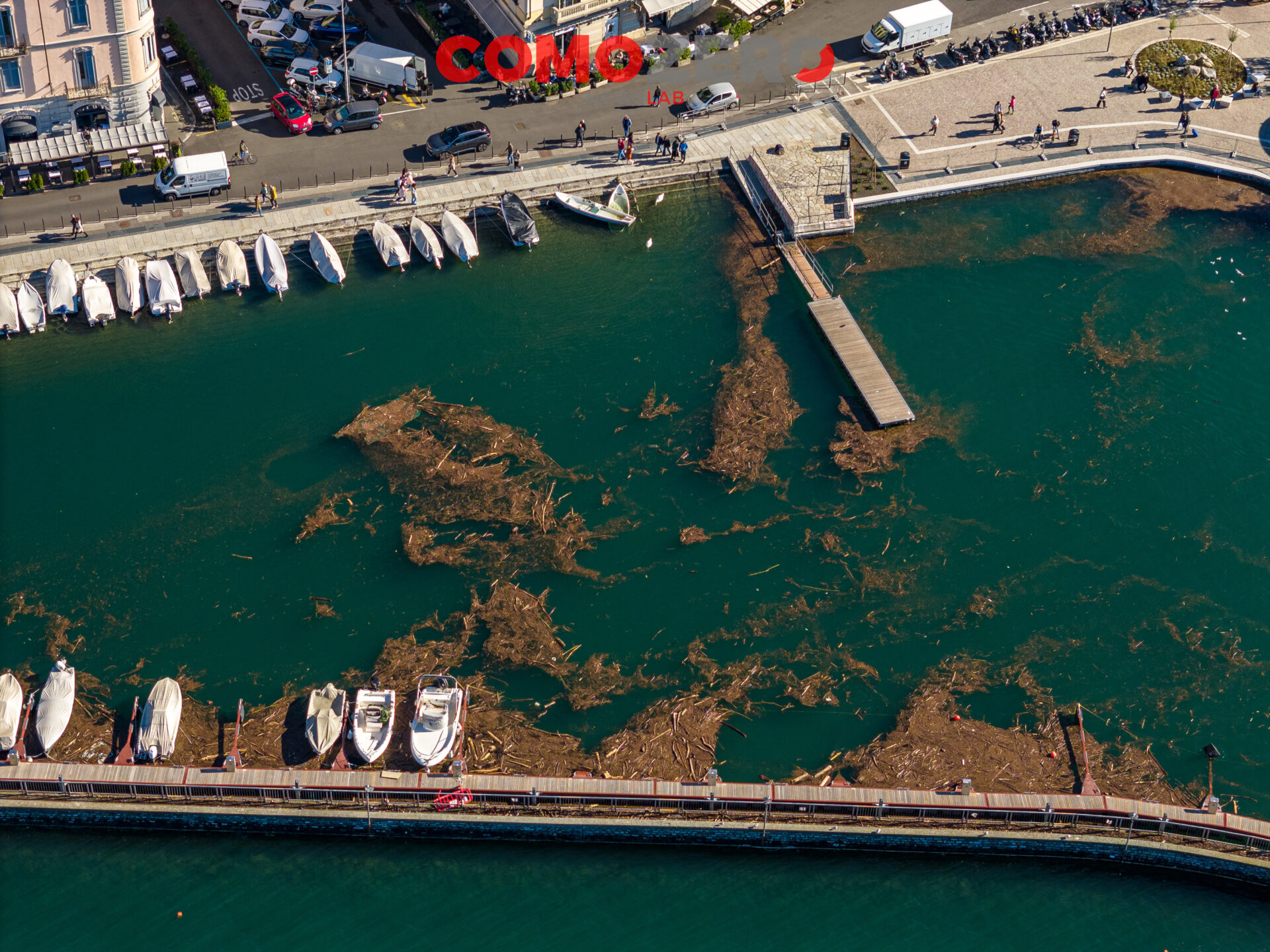 Mentre il lago di Como rientra lentamente, ci vorranno comunque diversi giorni perché liberi interamente piazza Cavour e lungolago, ecco le immagini dell’esondazione da una prospettiva diversa offerta dal drone. La percezione, fatalmente, cambia del tutto e permette di capire tutta la portata dell’evento di questi giorni. Quella che stupisce, vista dall’alto, è l’enorme mole di detriti arrivati come sempre ad accumularsi nel primo bacino, un enorme tappeto di legno che copre ampie parti dello specchio d’acqua e che richiederà un’ampia opera di pulizia da parte del battello spazzino. E’ l’ultima o al massimo una delle ultimissime volte in cui la città assisterà a un evento del genere, vista la conclusione del cantiere delle paratie prevista per la primavera 2024 (cantiere, di fronte a piazza Cavour, che si osserva molto bene nelle immagini).