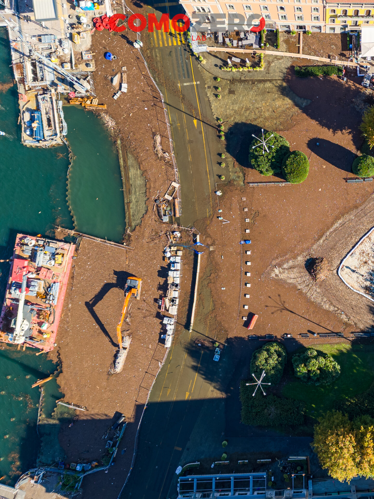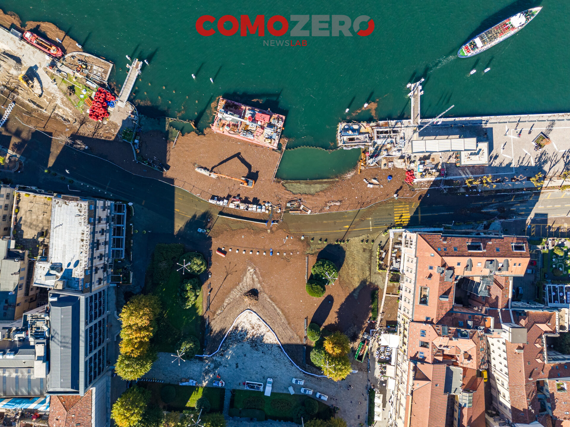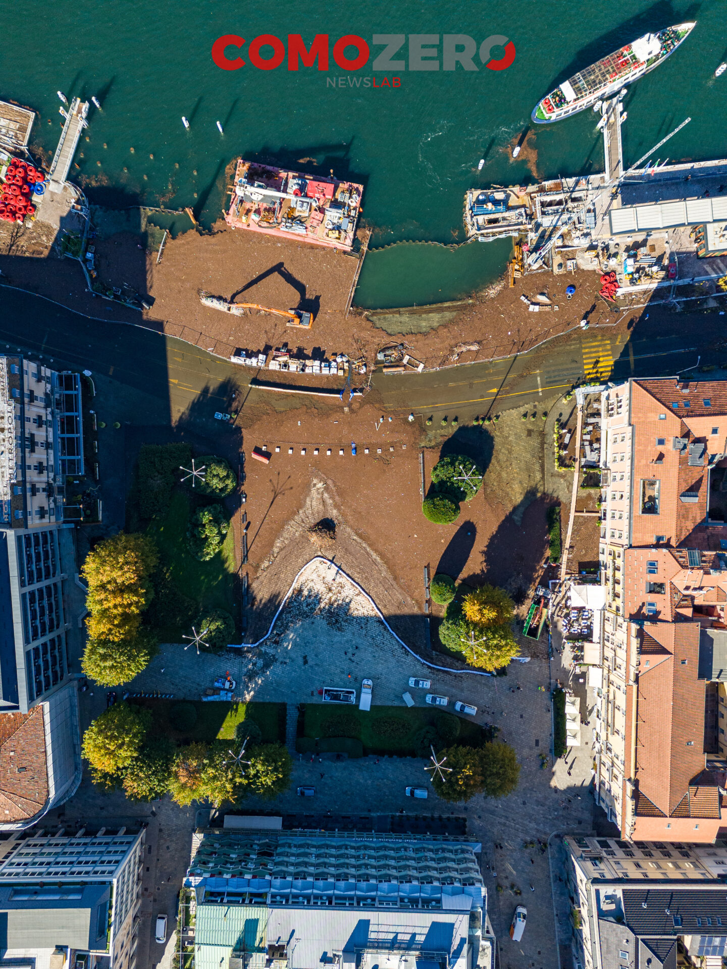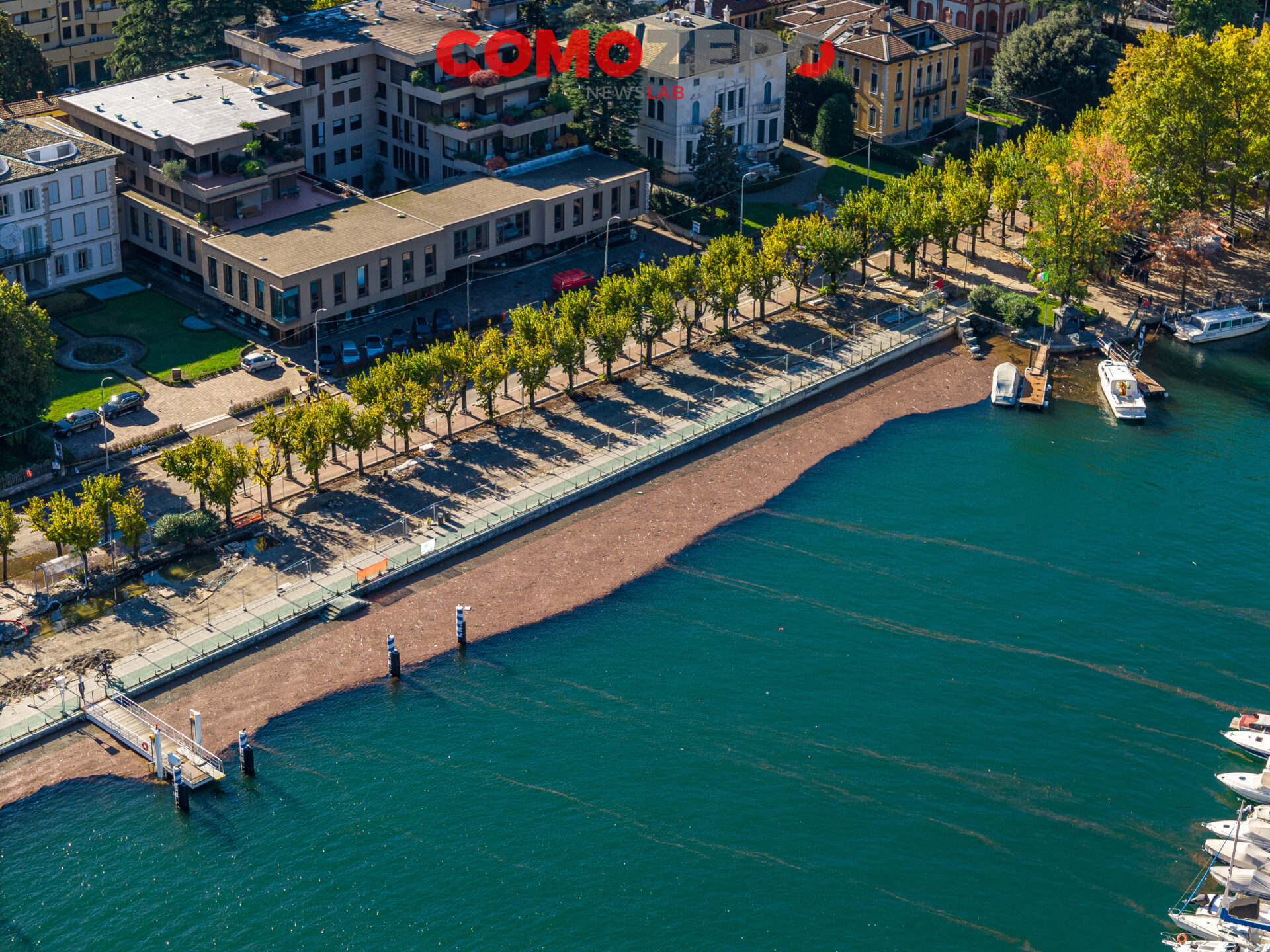 Mentre il lago di Como rientra lentamente, ci vorranno comunque diversi giorni perché liberi interamente piazza Cavour e lungolago, ecco le immagini dell’esondazione da una prospettiva diversa offerta dal drone. La percezione, fatalmente, cambia del tutto e permette di capire tutta la portata dell’evento di questi giorni. Quella che stupisce, vista dall’alto, è l’enorme mole di detriti arrivati come sempre ad accumularsi nel primo bacino, un enorme tappeto di legno che copre ampie parti dello specchio d’acqua e che richiederà un’ampia opera di pulizia da parte del battello spazzino. E’ l’ultima o al massimo una delle ultimissime volte in cui la città assisterà a un evento del genere, vista la conclusione del cantiere delle paratie prevista per la primavera 2024 (cantiere, di fronte a piazza Cavour, che si osserva molto bene nelle immagini).