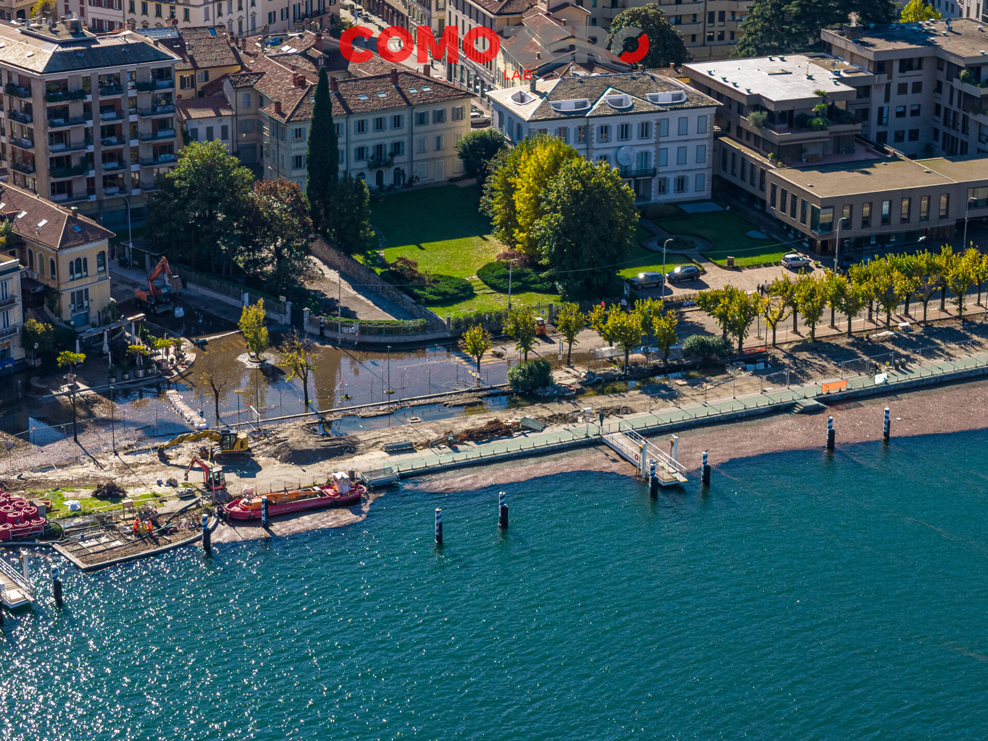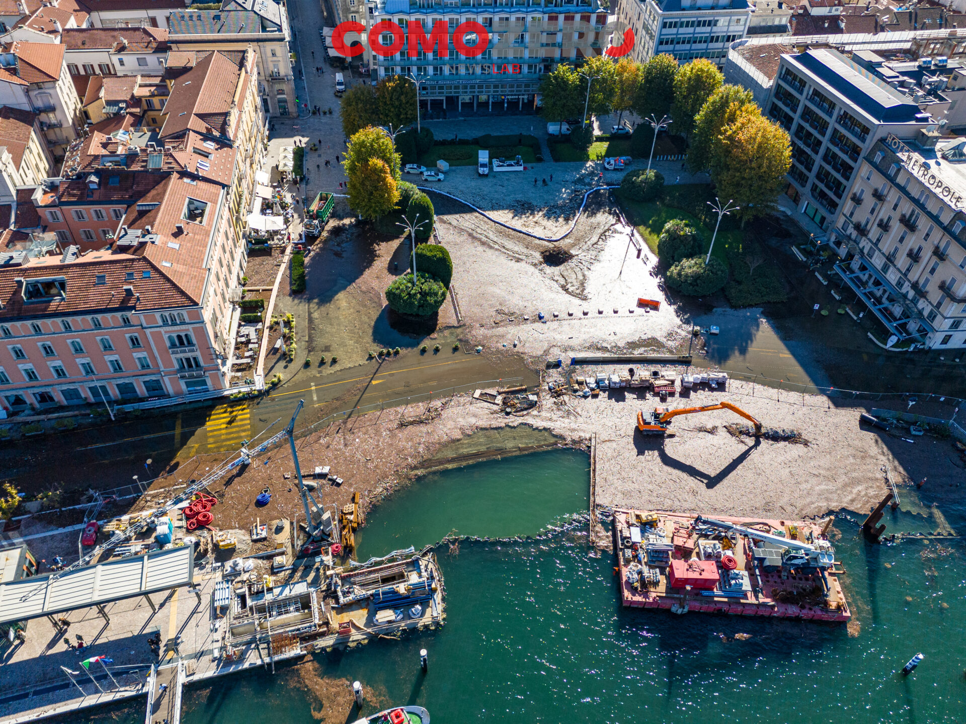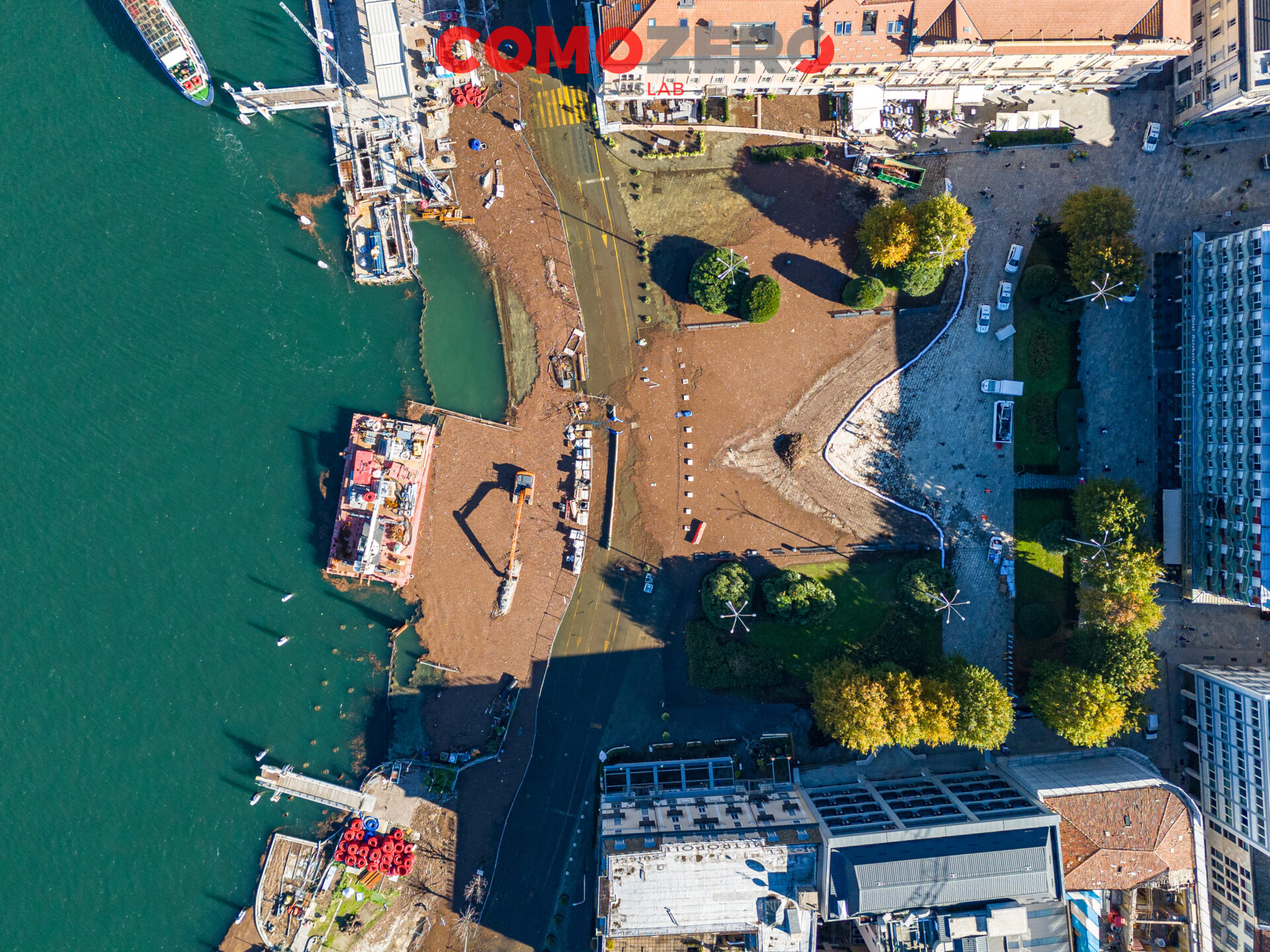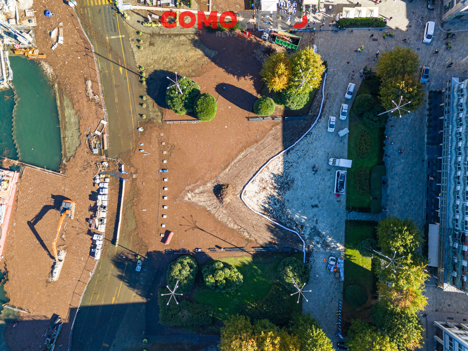 Mentre il lago di Como rientra lentamente, ci vorranno comunque diversi giorni perché liberi interamente piazza Cavour e lungolago, ecco le immagini dell’esondazione da una prospettiva diversa offerta dal drone. La percezione, fatalmente, cambia del tutto e permette di capire tutta la portata dell’evento di questi giorni. Quella che stupisce, vista dall’alto, è l’enorme mole di detriti arrivati come sempre ad accumularsi nel primo bacino, un enorme tappeto di legno che copre ampie parti dello specchio d’acqua e che richiederà un’ampia opera di pulizia da parte del battello spazzino. E’ l’ultima o al massimo una delle ultimissime volte in cui la città assisterà a un evento del genere, vista la conclusione del cantiere delle paratie prevista per la primavera 2024 (cantiere, di fronte a piazza Cavour, che si osserva molto bene nelle immagini).