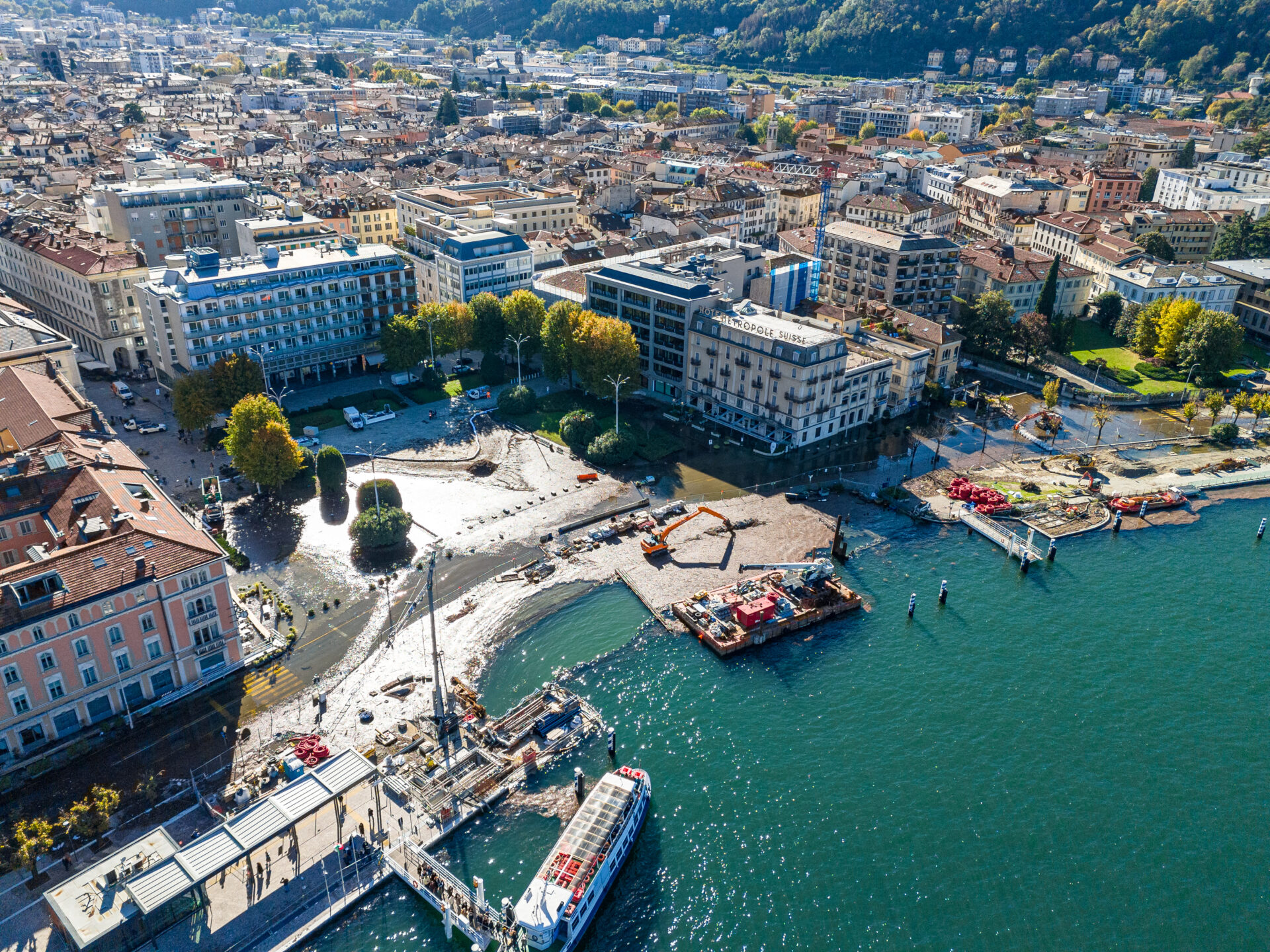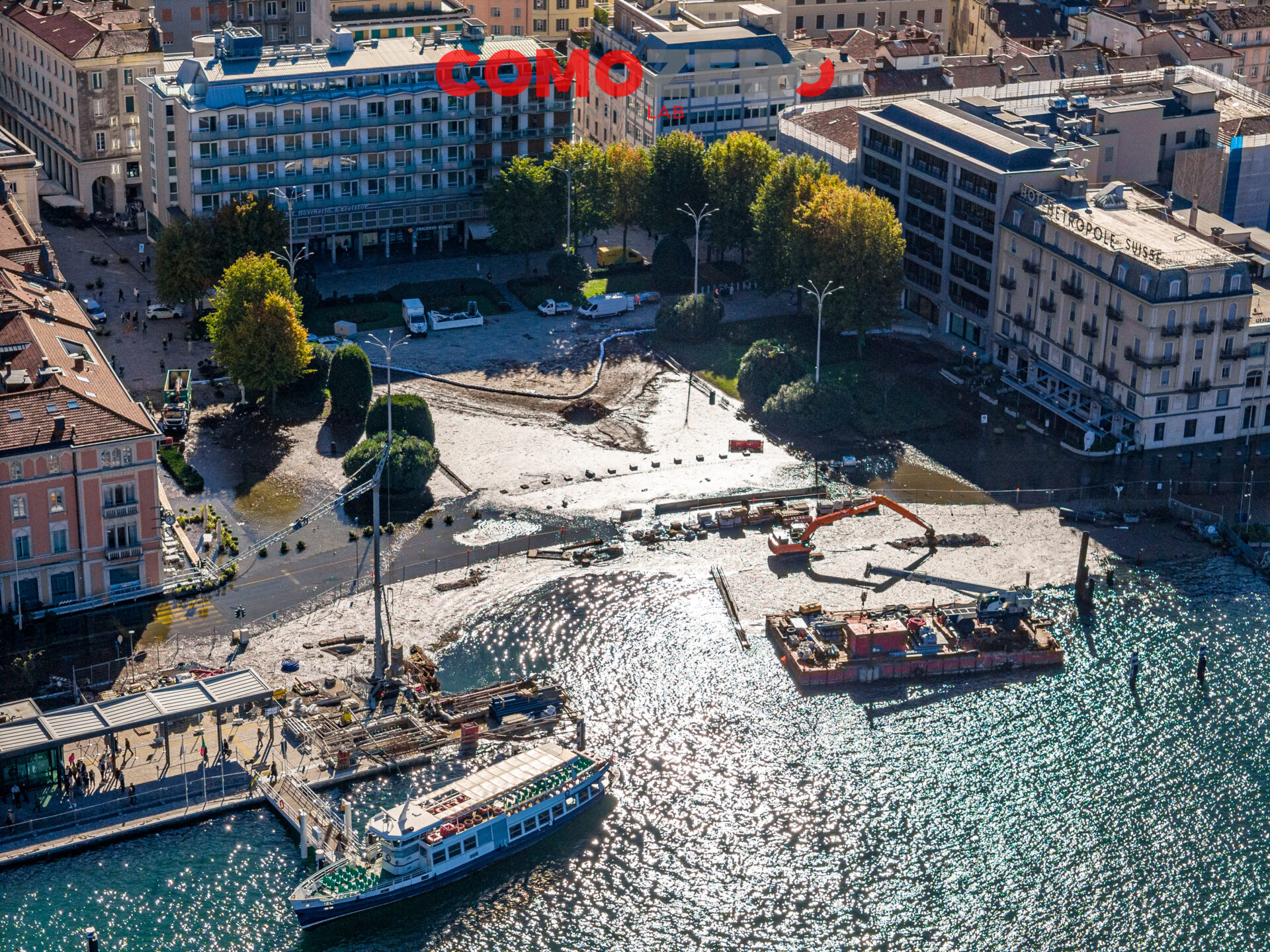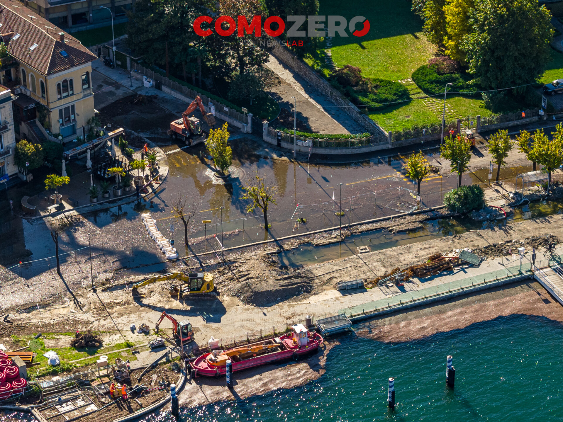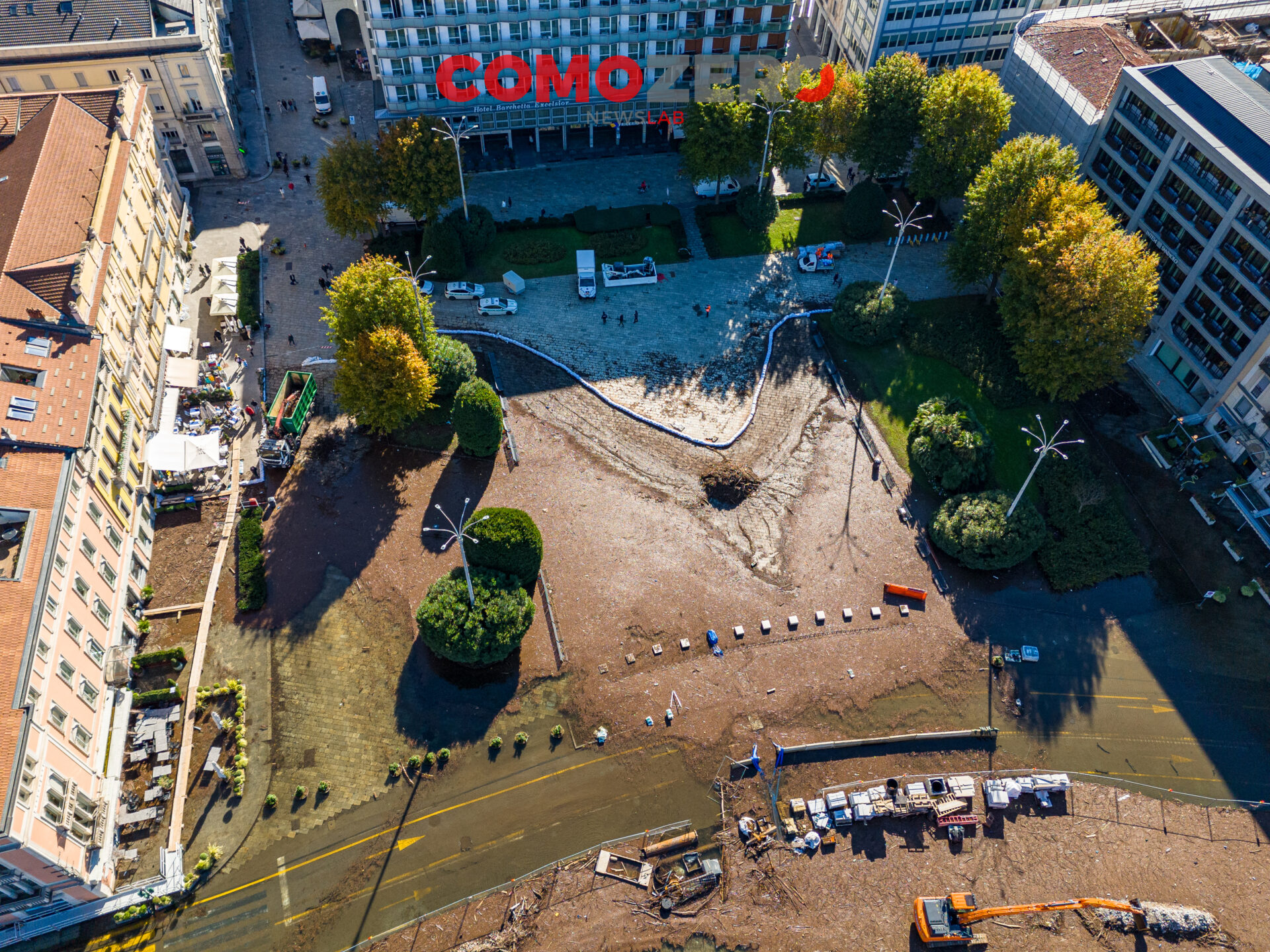 Mentre il lago di Como rientra lentamente, ci vorranno comunque diversi giorni perché liberi interamente piazza Cavour e lungolago, ecco le immagini dell’esondazione da una prospettiva diversa offerta dal drone. La percezione, fatalmente, cambia del tutto e permette di capire tutta la portata dell’evento di questi giorni. Quella che stupisce, vista dall’alto, è l’enorme mole di detriti arrivati come sempre ad accumularsi nel primo bacino, un enorme tappeto di legno che copre ampie parti dello specchio d’acqua e che richiederà un’ampia opera di pulizia da parte del battello spazzino. E’ l’ultima o al massimo una delle ultimissime volte in cui la città assisterà a un evento del genere, vista la conclusione del cantiere delle paratie prevista per la primavera 2024 (cantiere, di fronte a piazza Cavour, che si osserva molto bene nelle immagini).