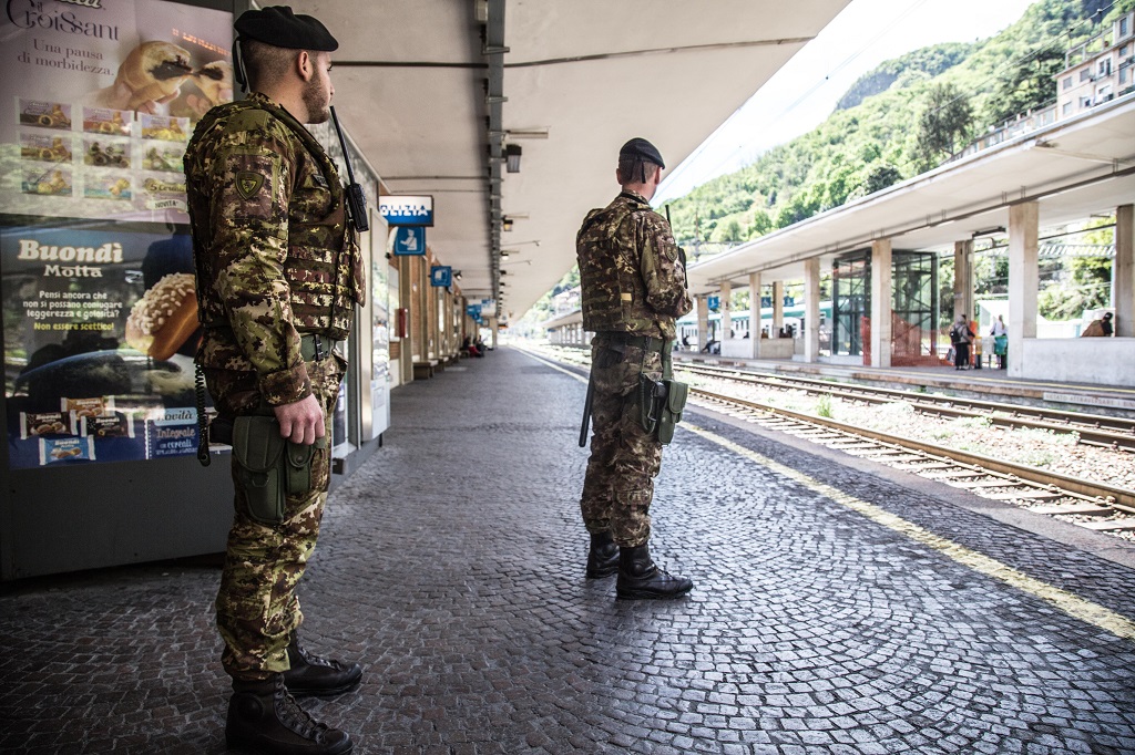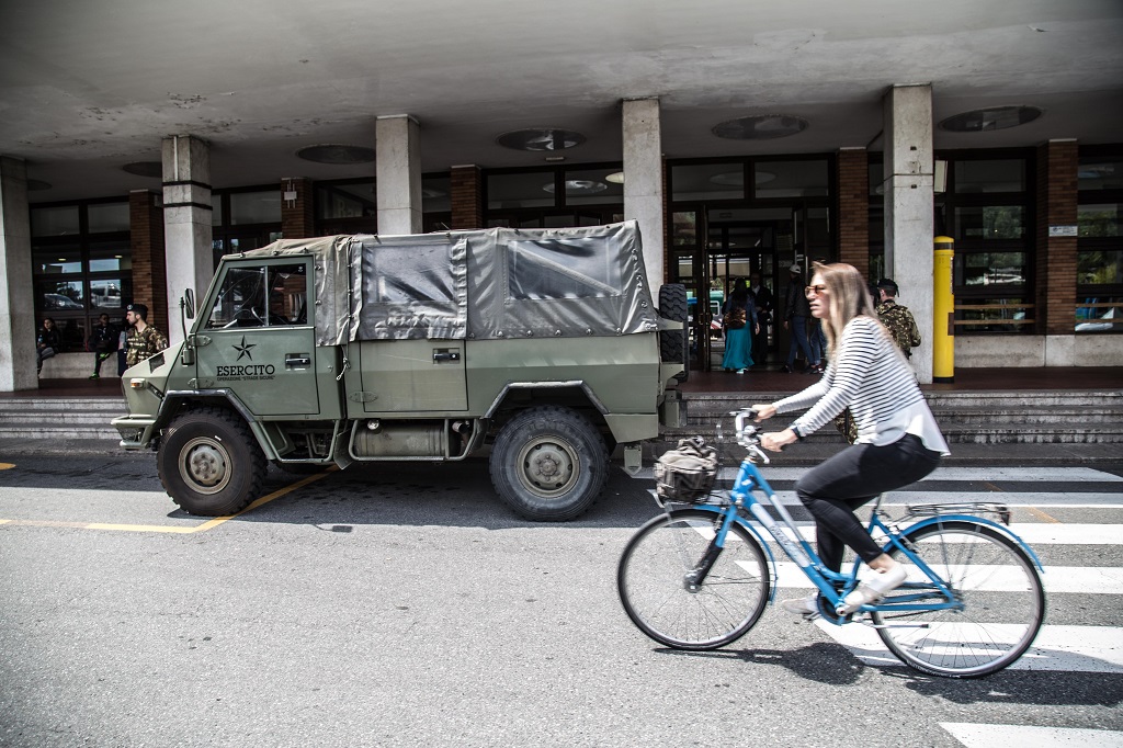 La stazione San Giovanni di Como, alla luce del sole, non ha un aspetto pericoloso. Eppure, tra il viavai di turisti, la camionetta dell’Esercito Italiano con la stella dell’operazione Strade Sicure parrebbe suggerire il contrario.