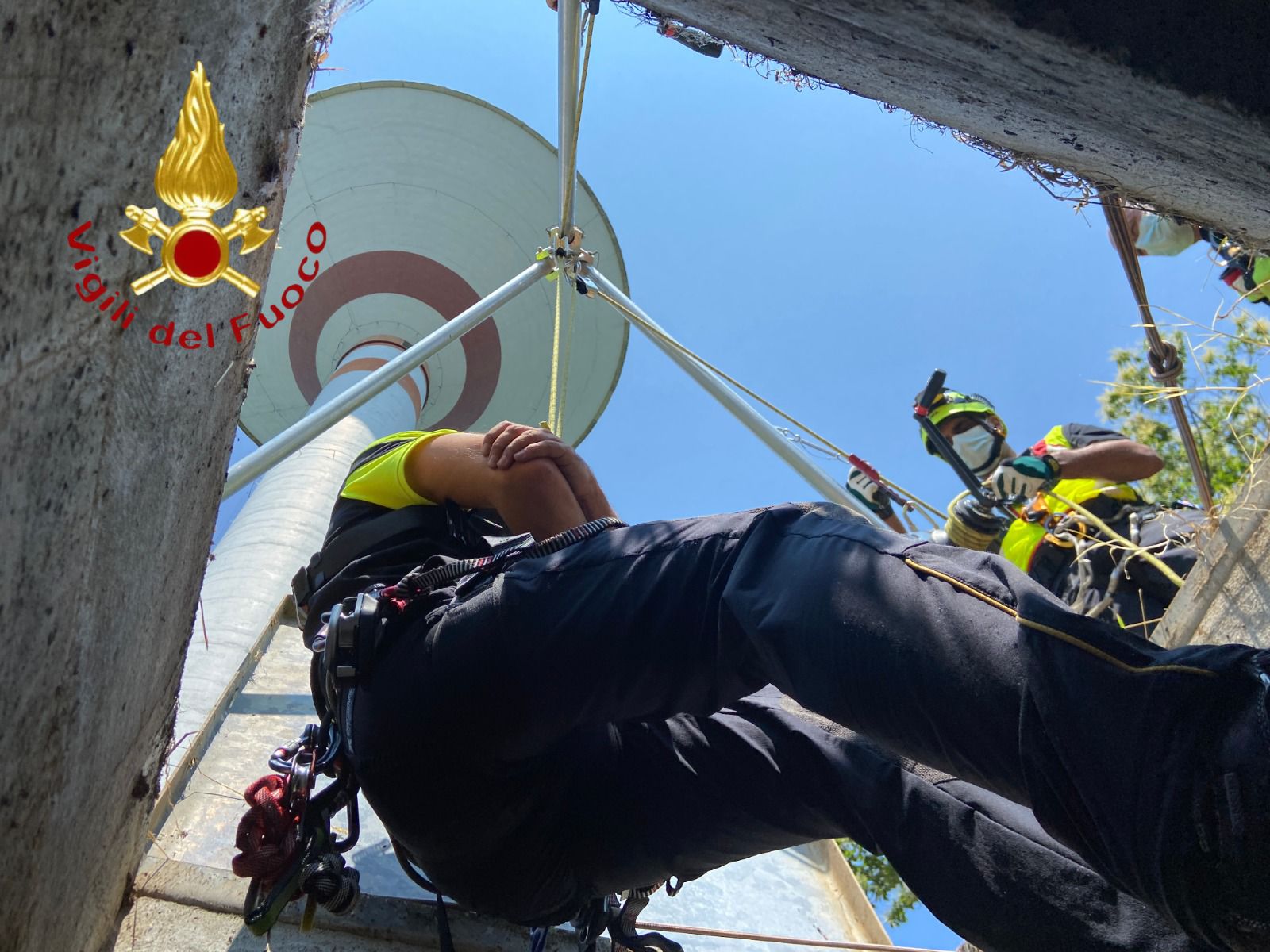Un’esercitazione molto complessa nei giorni scorsi ha portato le squadre a testare le manovre di evacuazione dalla torre-serbatoio di Fino Mornasco.